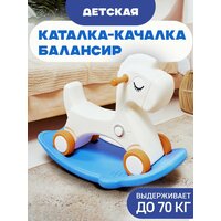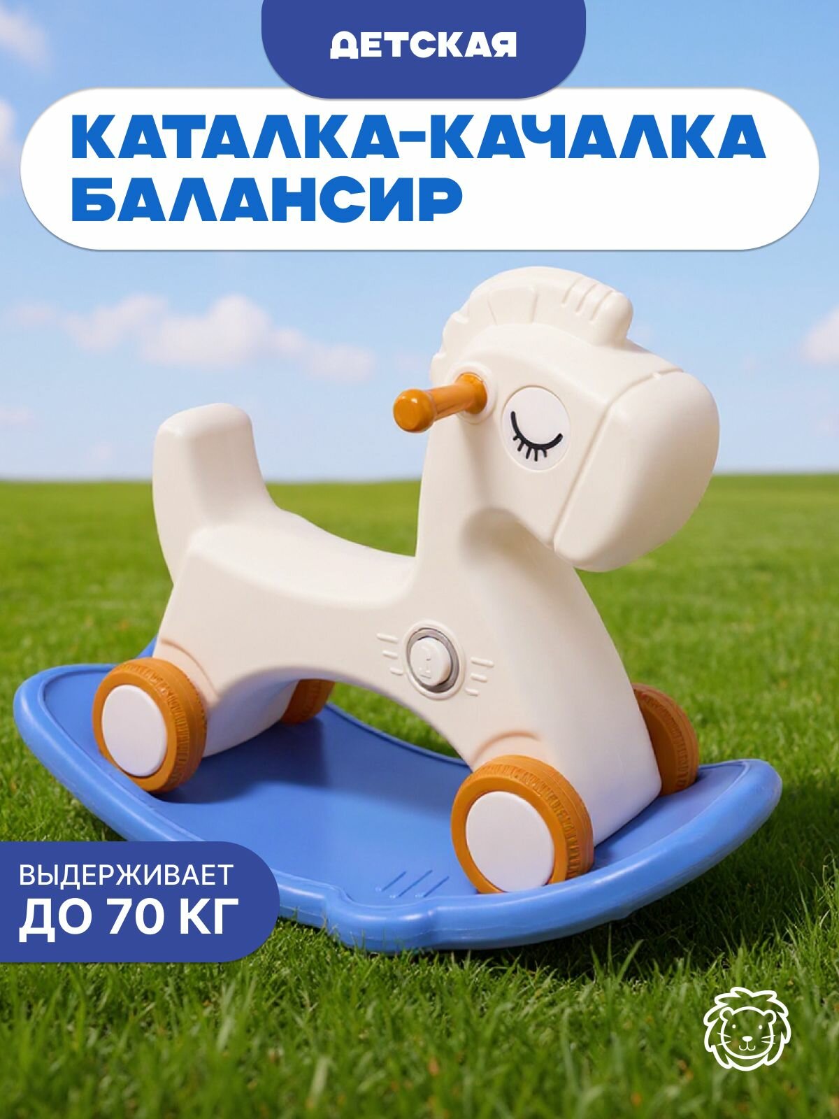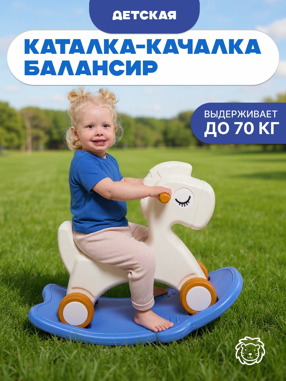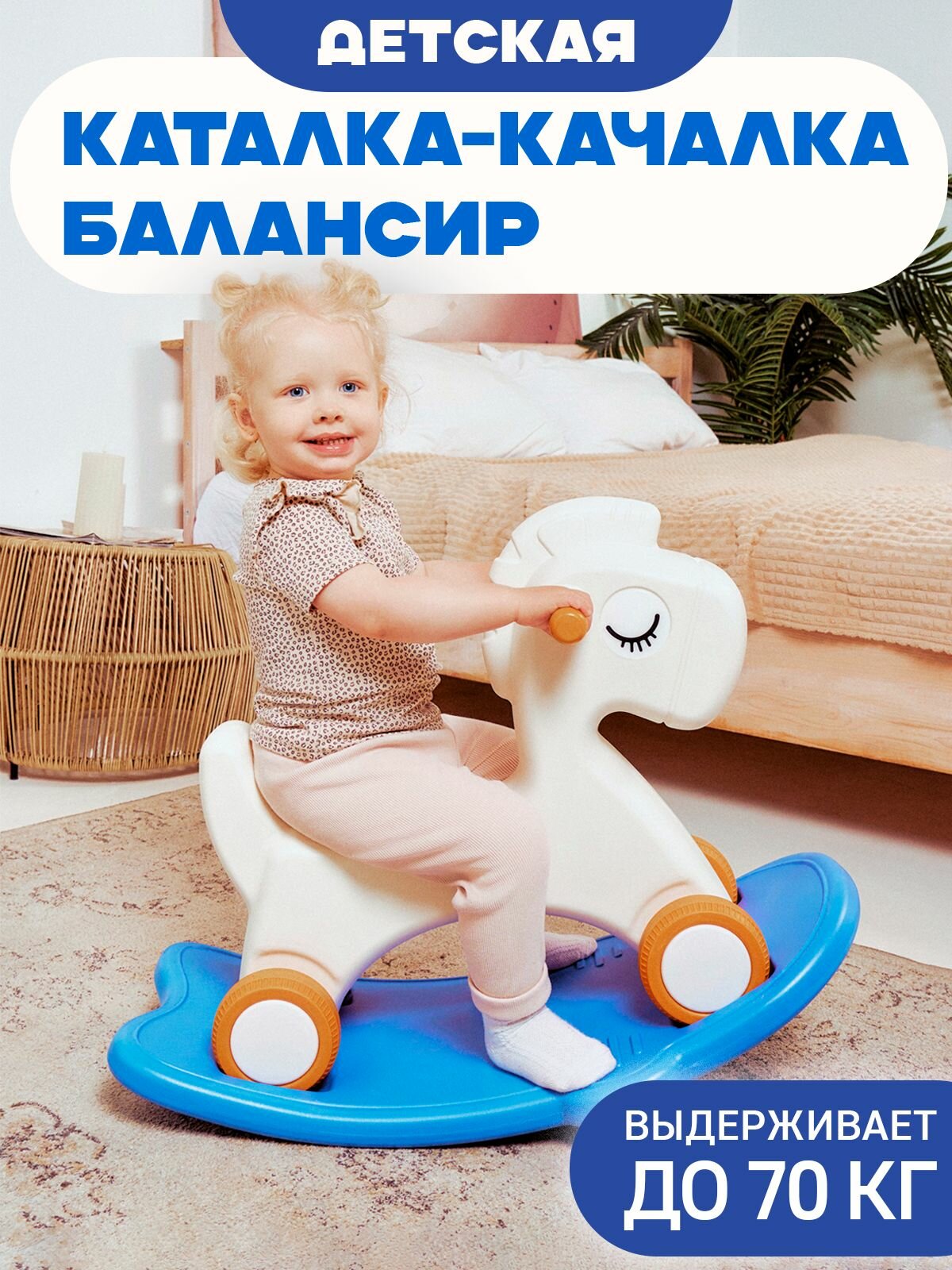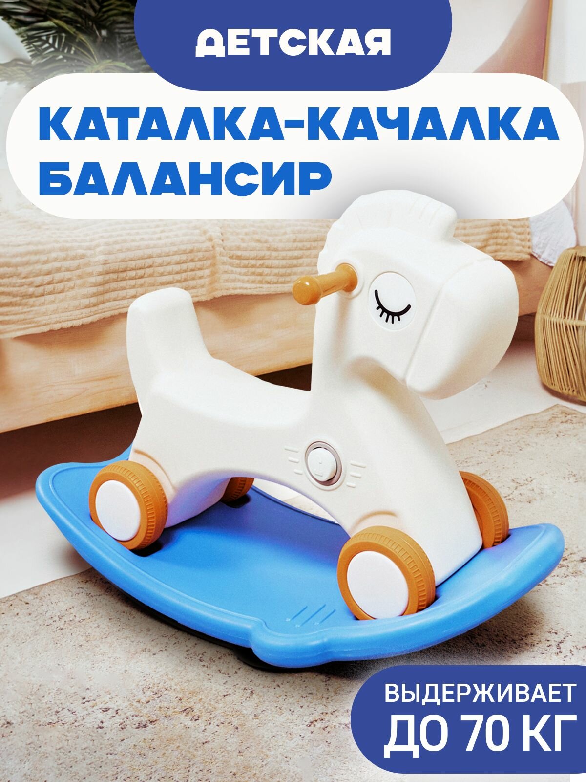 Купить Качалка детская Лошадка качалка детская Беговел трансформер для детей Балансир, Цвет — Молочно — Синий с доставкой по всей России.