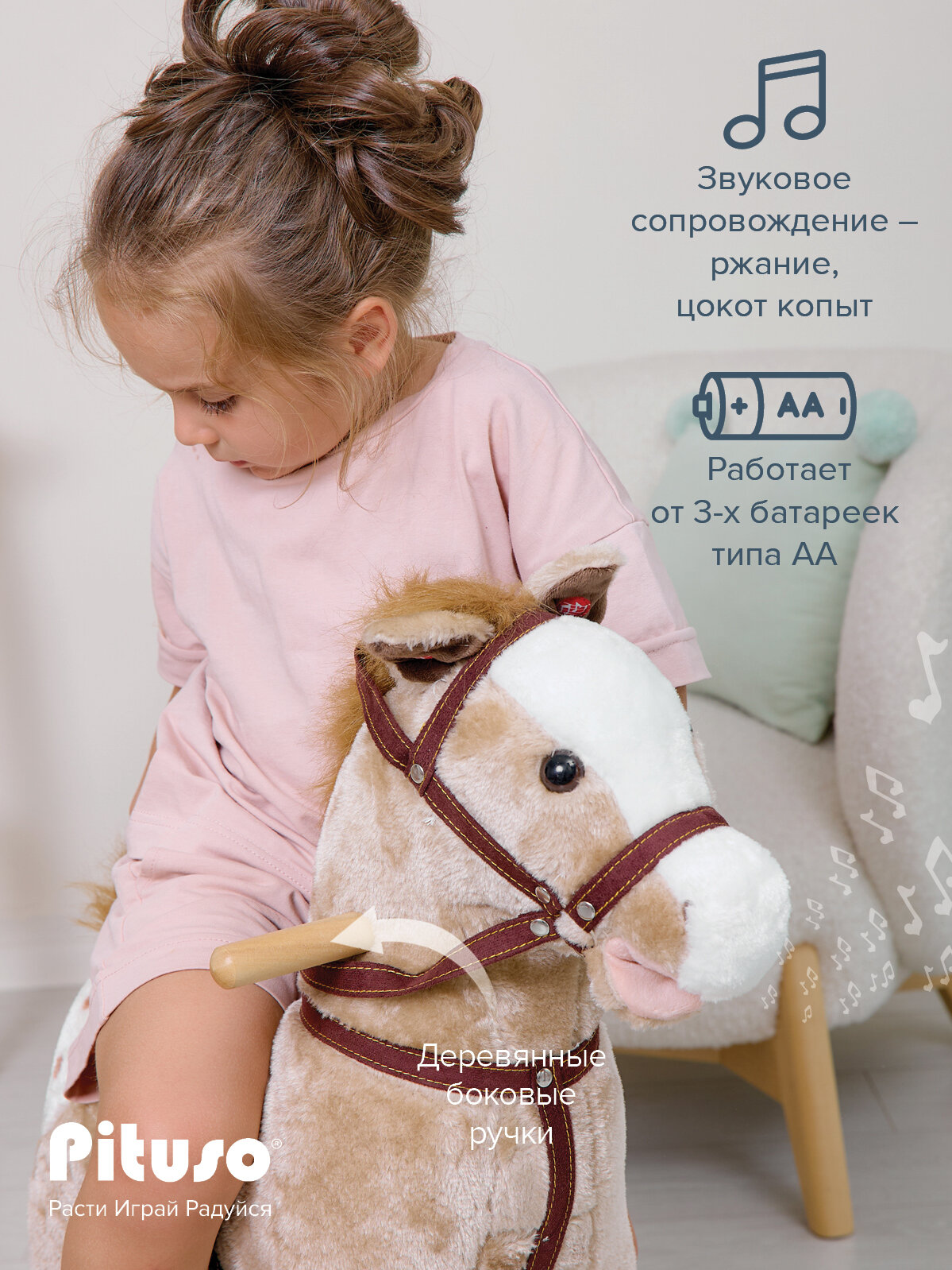 Купить Качалка детская, лошадка каталка Pituso 2 в 1, кнопка ржания и цокота, качание хвоста, открывает рот, цвет серый с белым с доставкой по всей России.