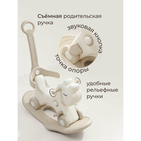 Особенное удобство лошади качалки для мальчиков и девочек от 1 года заключается в наличии съёмной родительской ручки, благодаря которой родитель всегда сможет поддержать своего кроху, помогая сохранять равновесие и контролировать скорость движения. Ребенок научится уверенно держать баланс, укрепляя мышцы спины и ног, развивая ловкость и внимательность.