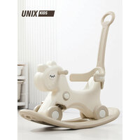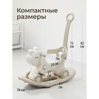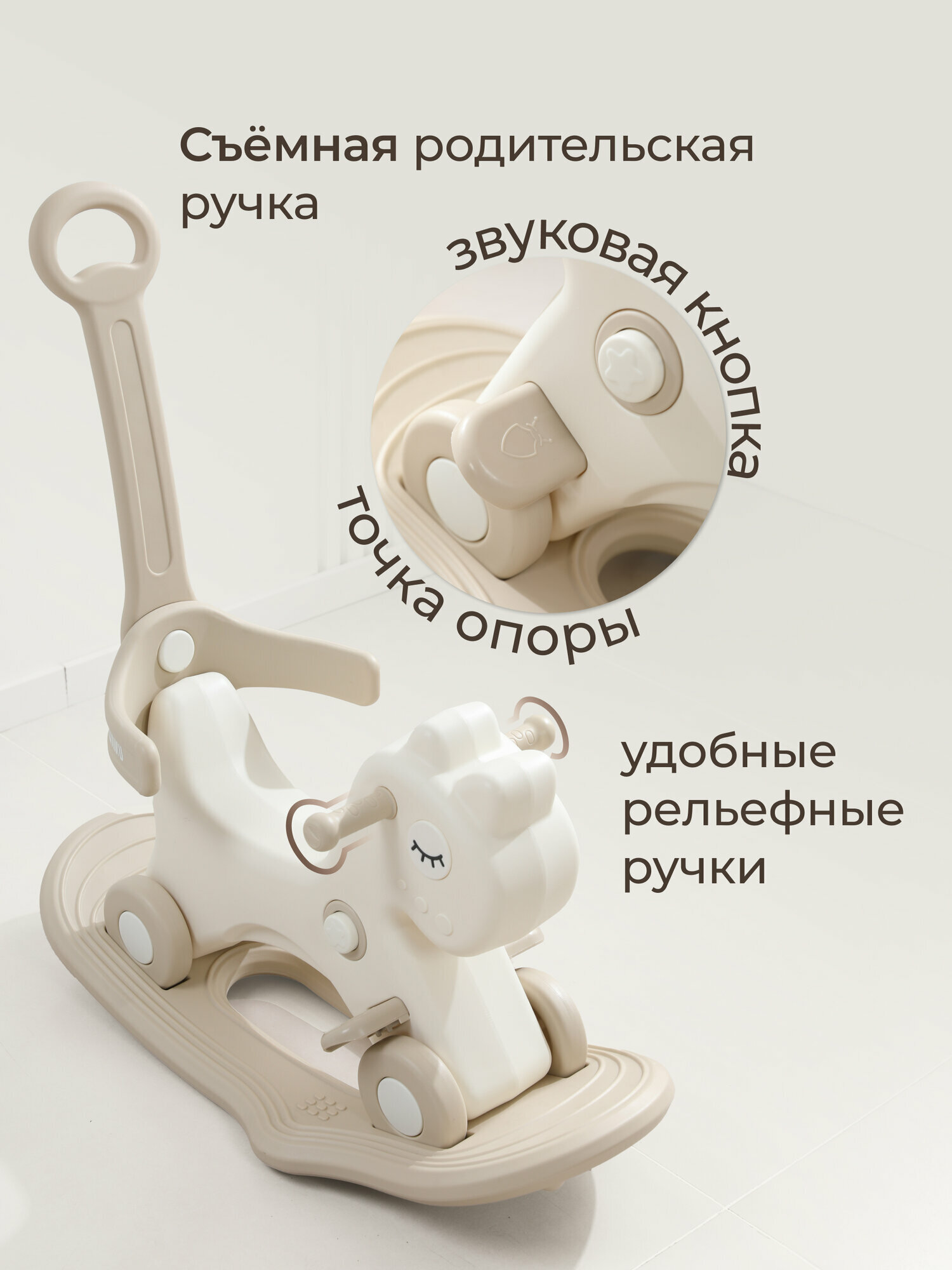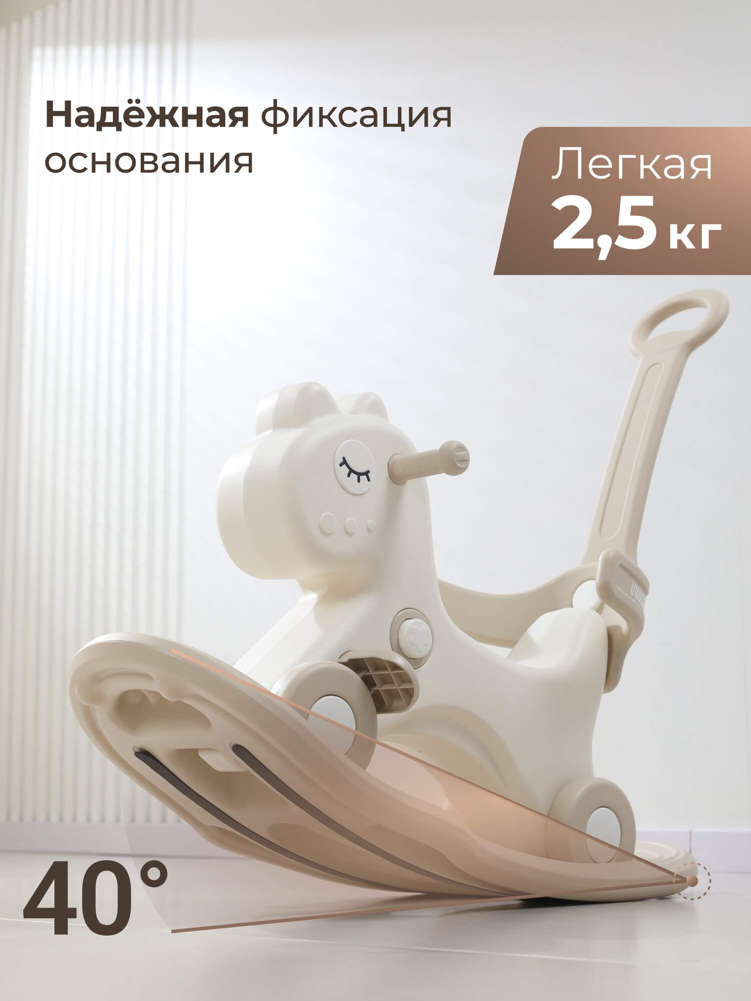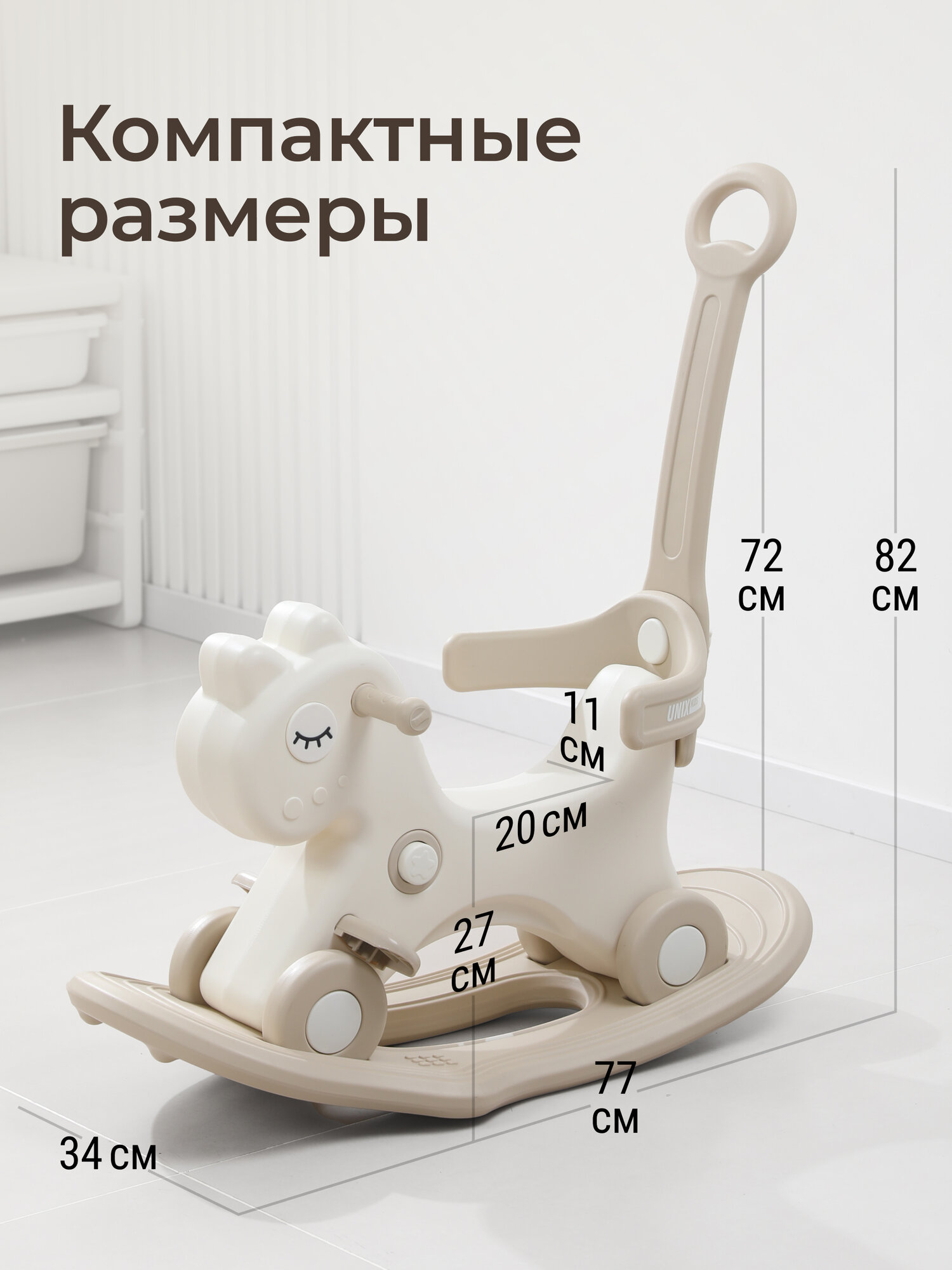 Уникальная детская лошадка–качалка с родительской ручкой UNIX Kids Dino Camel объединяет сразу четыре вида развлечений для малышей: удобный балансборд, качалку, каталку и беговел. Всего одним движением руки родители смогут трансформировать игрушку, открывая перед малышом новый спектр возможностей и впечатлений.