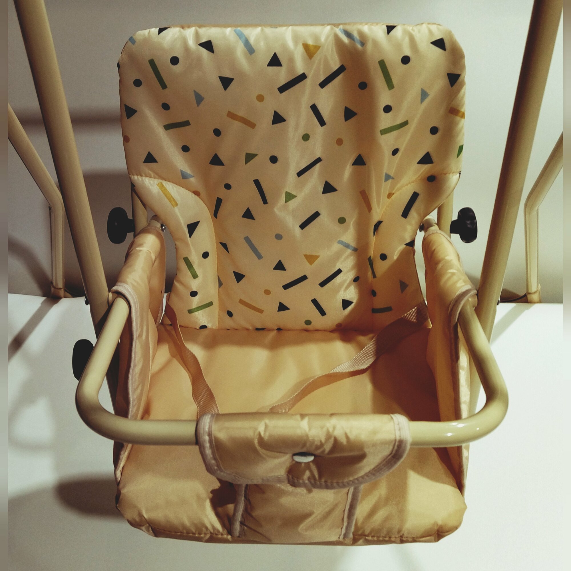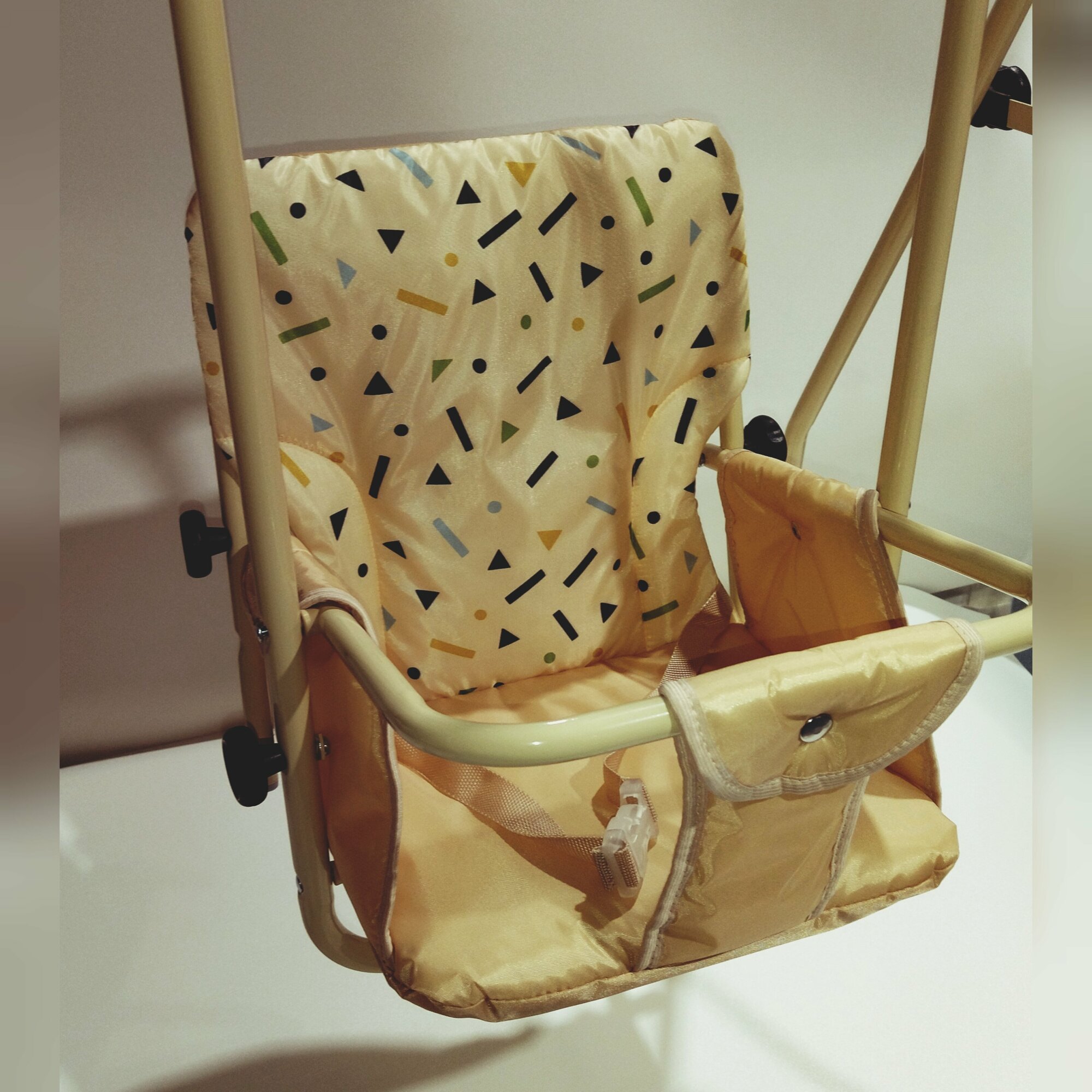 качели с опорой, ограничивающий бортик, ремни безопасности, сиденье со спинкой, складные