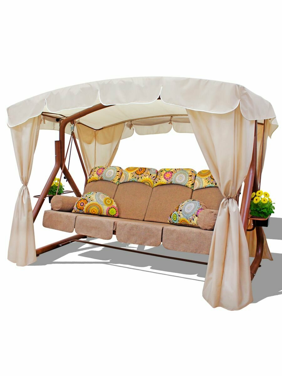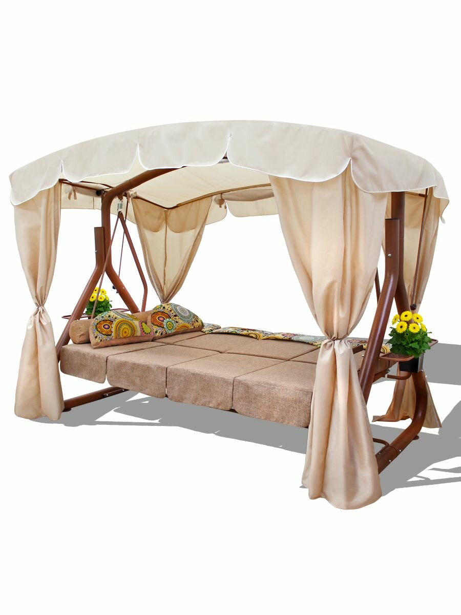 | Комплектация | стальной каркас, тент с антимоскитной сеткой, 4 кресла 4 подголовника 2 дополнительные подушки, 2 валика, 2 металлических подстаканника с кашпо Светодиодный фонарик |