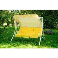 Габаритные размеры изделия (длина х ширина х высота), мм: 2230(±10) x 1610(±20) x 2000(±20). Габаритные размеры сиденья, спинки и тента (длина х ширина), мм: размеры сиденья: 1785x530 размеры спинки: 1785x635 размер тента: 1700/1805х1435 Максимальная нагрузка, кг: 280 Каркас: труба стальная Ø51х1,4мм; полимерное покрытие; Мягкий элемент: ткань 45% п/э – 55% хлопок, плотность 108-111г/м2, наполнитель мягкого элемента аэрфом+поролон+синтепон. Подушки – 2шт. Декор мягкого элемента «тафтингом». Тент: ткань с водоотталкивающей отделкой 100% п/э плотность 125г/м2 или 90г/м2 Размеры упаковки, мм: 540х290х2260. Вес изделия: нетто, кг – 45; брутто, кг – 49,5.