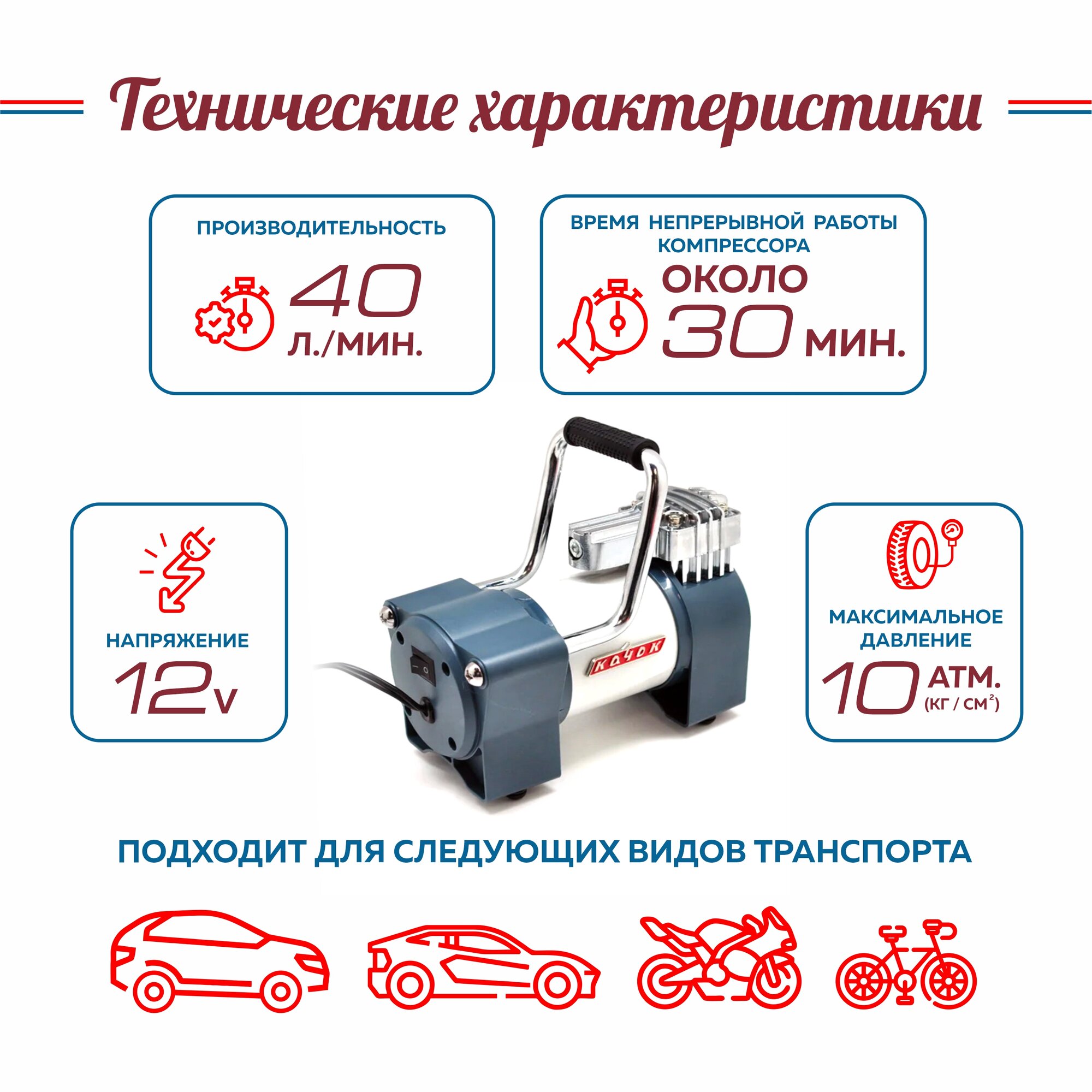 Портативный компактный воздушный компрессор с цифровым монитором и функцией PowerBank.