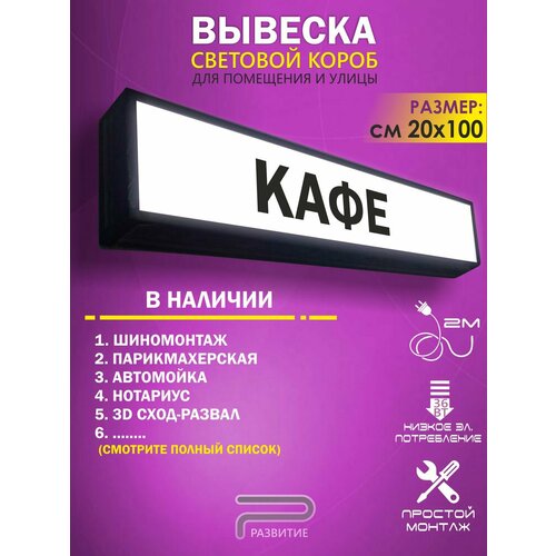 Кафе световой короб, светодиодная вывеска 1000Х200 мм: сравнение цен, характеристики, фото, актуальное наличие и цены.