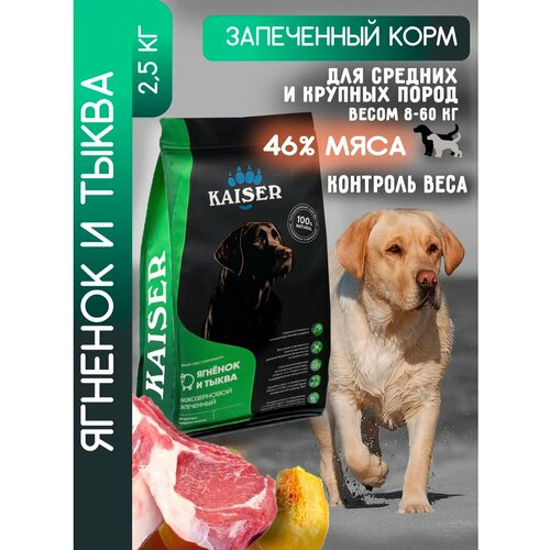 KAISER Низкозерновой запеченный сухой корм для взрослых собак средних и крупных пород, "Контроль веса" - "Ягненок и тыква", 2,5 кг был разработан специально для здоровья и активного долголетия собак. Рекомендован собакам склонным к набору лишнего веса, стерилизованным собакам и собакам старше 7 лет. Мы добавили в корм доказано работающие добавки: