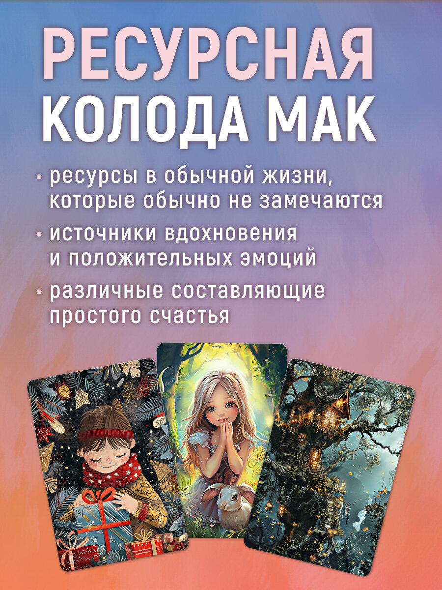 Невероятно милая и поднимающая настроение ресурсная колода. Изображения на картах легко унесут вас в счастливые моменты детства, где все сказочно интересно и по-волшебному удивительно.