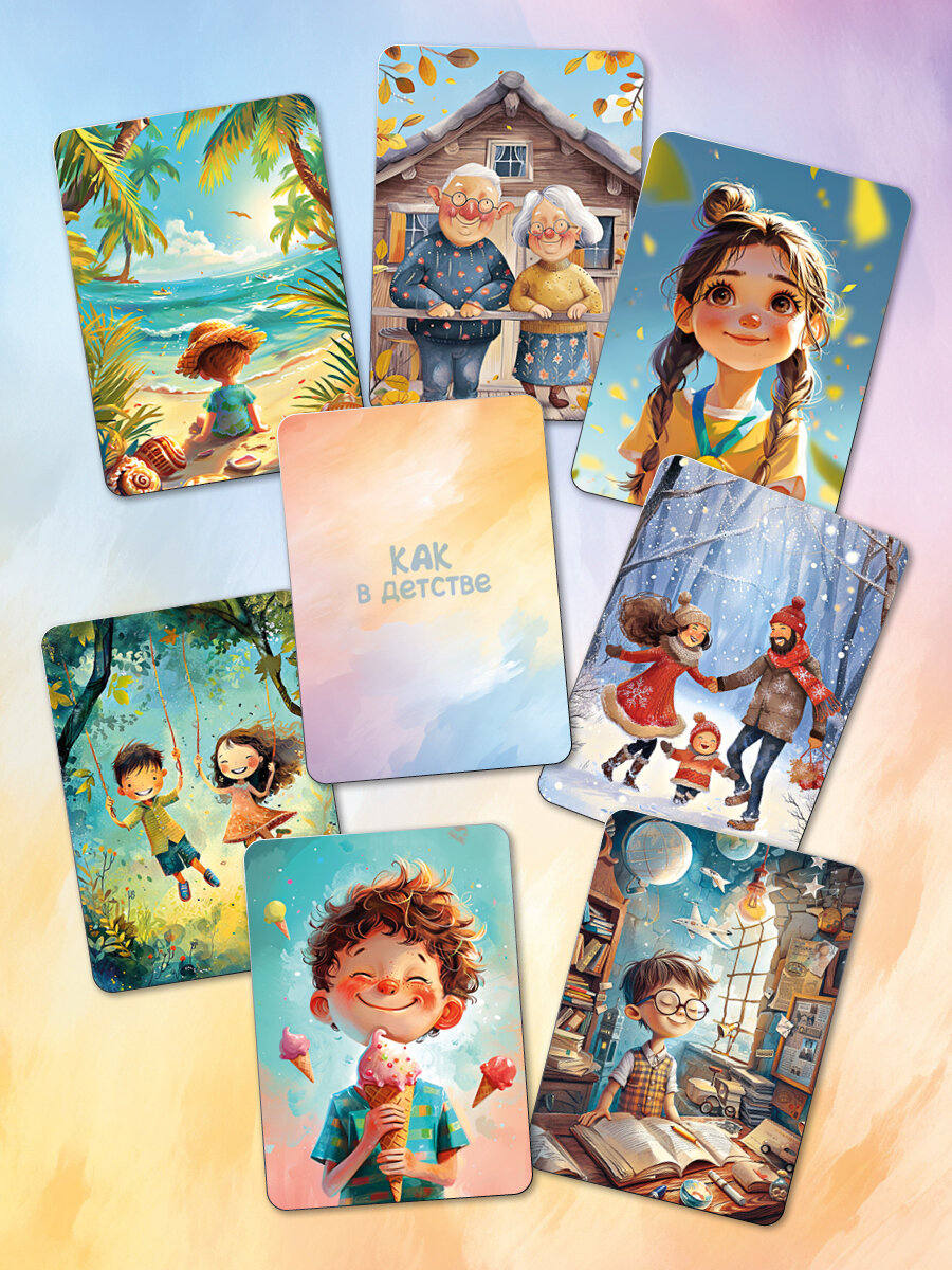 Работа с метафорическими картами "Как в детстве" поддержит вас в сложное время, подарит позитивный настрой, поможет отыскать в себе силы и ресурсы для дальнейших свершений в вашей уже взрослой жизни.