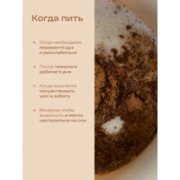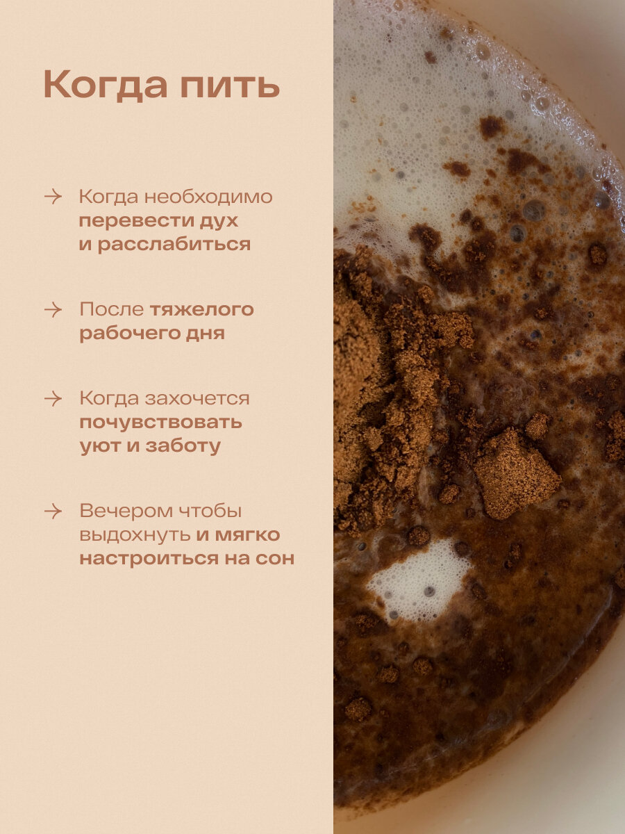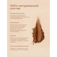 Какао-латте бренда re-feel отличается полностью натуральным составом без сахара и кофеина. В нем содержатся пребиотики, необходимые для нормальной работы ЖКТ, а также специи, придающие напитку поистине изысканный шоколадный вкус. Это уникальное сочетание функциональности и пользы. Cacao содержит мускатный орех и кокосовое молоко, корицу и розовую гималайскую соль, душистые приправы, благодаря которым обретает непревзойденные вкусовые качества с приятным послевкусием и изысканный аромат. Смесь обогащена инулином и грибом рейши, за счет чего способствует снижению тревожности и улучшению сна, оказывает успокаивающий и согревающий эффект. Продукт способствует укреплению иммунитета и снижению стресса, приносит здоровью немалую пользу. За счет отсутствия сахара он подойдет для людей, следящих за фигурой и приверженцев ПП. Продукция выпускается в быстрорастворимой порошковой форме. Для приготовления низкокалорийного напитка достаточно развести содержимое пакетика в горячей воде. Сухая смесь позволит приготовить непревзойденные коктейли, подходит для добавки в выпечку. Например, торты или пудинги. Этот премиум продукт отлично дополняет правильное питание и поможет легко разнообразить рацион. В нашей коллекции представлены упаковки по 3 и 12 пакетиков. Кроме того, есть также какао в больших пакетах по 260 и 520 грамм. Не составит труда подобрать подходящий вариант, исходя из личных предпочтений и преследуемых целей. Какао-латте без ГМО от re-feel - ваш идеальный вечерний напиток! Для приготовления достаточно залить одну мерную ложку порошка горячей водой и интенсивно перемешать. Для получения пенки используйте венчик. По желанию вы также можете добавить какао в мороженое или выпечку, приготовить с помощью него айс латте или смузи. Наша продукция может быть смело рассмотрена в виде оригинальной подарочной идеи для всех взрослых женщин и мужчин. Необычный презент вполне уместно преподнести учителю и коллеге, начальнику и воспитателю, всем близким и знакомым. Такой сюрприз можно вручить любимым девушке и парню, лучшим другу и подруге, бабушке и дедушке. Он непременно порадует маму и папу, брата и сестру, тетю и дядю. Страна производства Россия. Срок годности продукта 12 месяцев с даты производства. У нас есть акции и распродажи, вы можете купить наши товары в подарок со скидкой!
