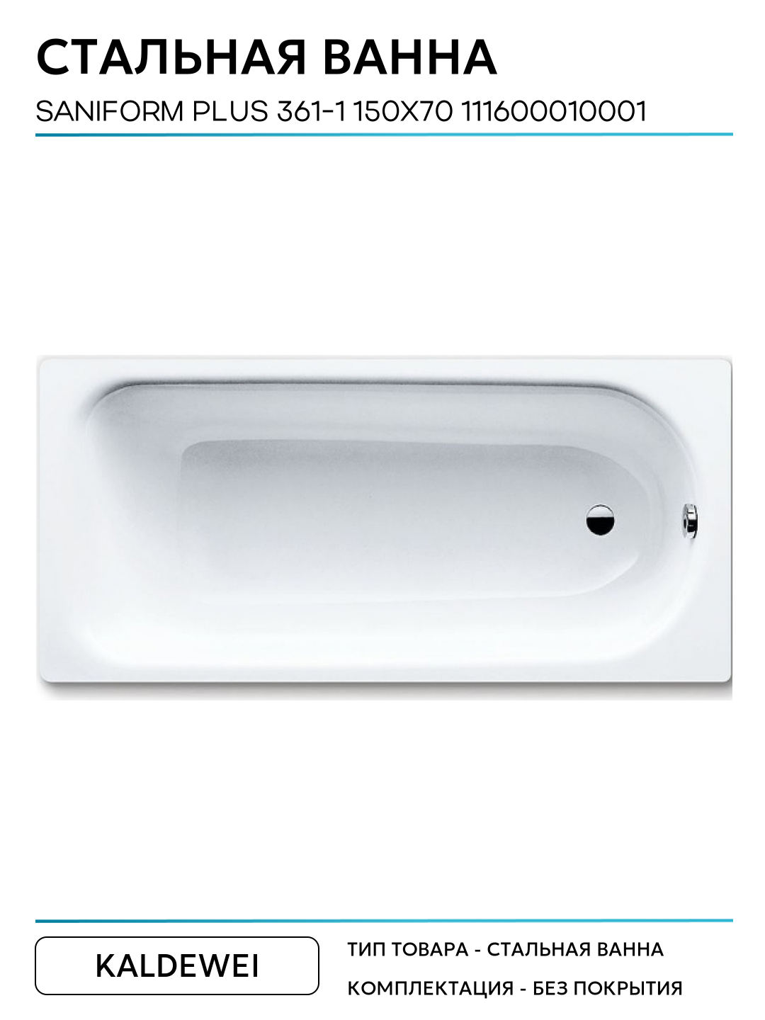 Стальная ванна Kaldewei Saniform Plus 361-1 150×70 111600010001 без покрытия белый нержавеющая сталь: сравнение цен, характеристики, фото, актуальное наличие и цены.