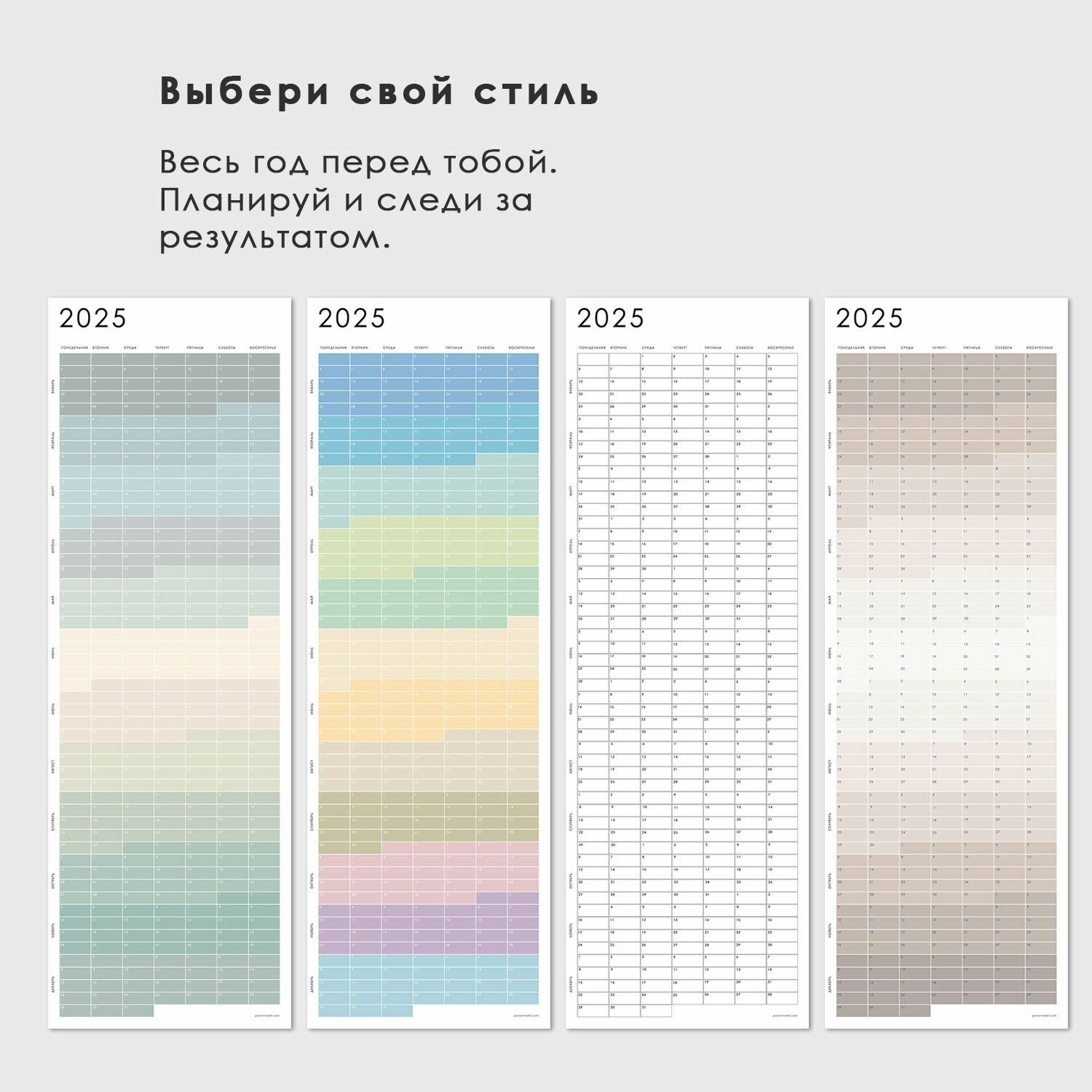 Календарь 2025 настенный - это современный и стильный настенный декор для интерьера. Календарь изготовлен на матовой бумаге premium quality плотностью 240 г/м2 с использованием светостойких экологичных чернил. На календарь наносится дополнительный слой матовой ламинации, что добавляет плотности и износоустойчивости для календаря. Из-за особенностей цветопередачи разных мониторов цвет может немного отличаться.Стильный планер на 2025 год отображает весь год на одном пространстве. Каждый месяц выделен своим цветом, каждый день в отдельной ячейке. Вы можете писать на календаре чем угодно: ручки, фломастеры, маркеры.Обратите внимание, что календарь доставляется в тубусе. Мы бережно упаковываем календарь в плотный тубус, что обеспечивает сохранность и безопасную доставку.Календари будут стильным дополнением в офисе или на рабочем месте.
