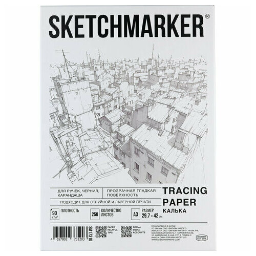 Калька А3 для печати и творчества, 90 г/м2, 250 листов, SKETCHMARKER, R17310, 116414: сравнение цен, характеристики, фото, актуальное наличие и цены.