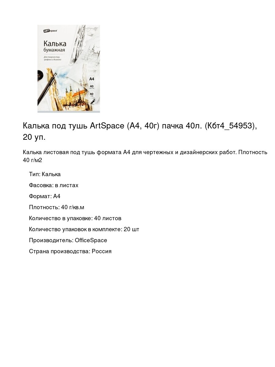 Купить Калька под тушь ArtSpace (А4, 40г) пачка 40л. (Кбт4_54953), 20 уп. с доставкой по всей России. Калька под тушь ArtSpace (А4, 40г) пачка 40л. (Кбт4_54953), 20 уп.: сравнение цен, характеристики, фото, актуальное наличие и цены.