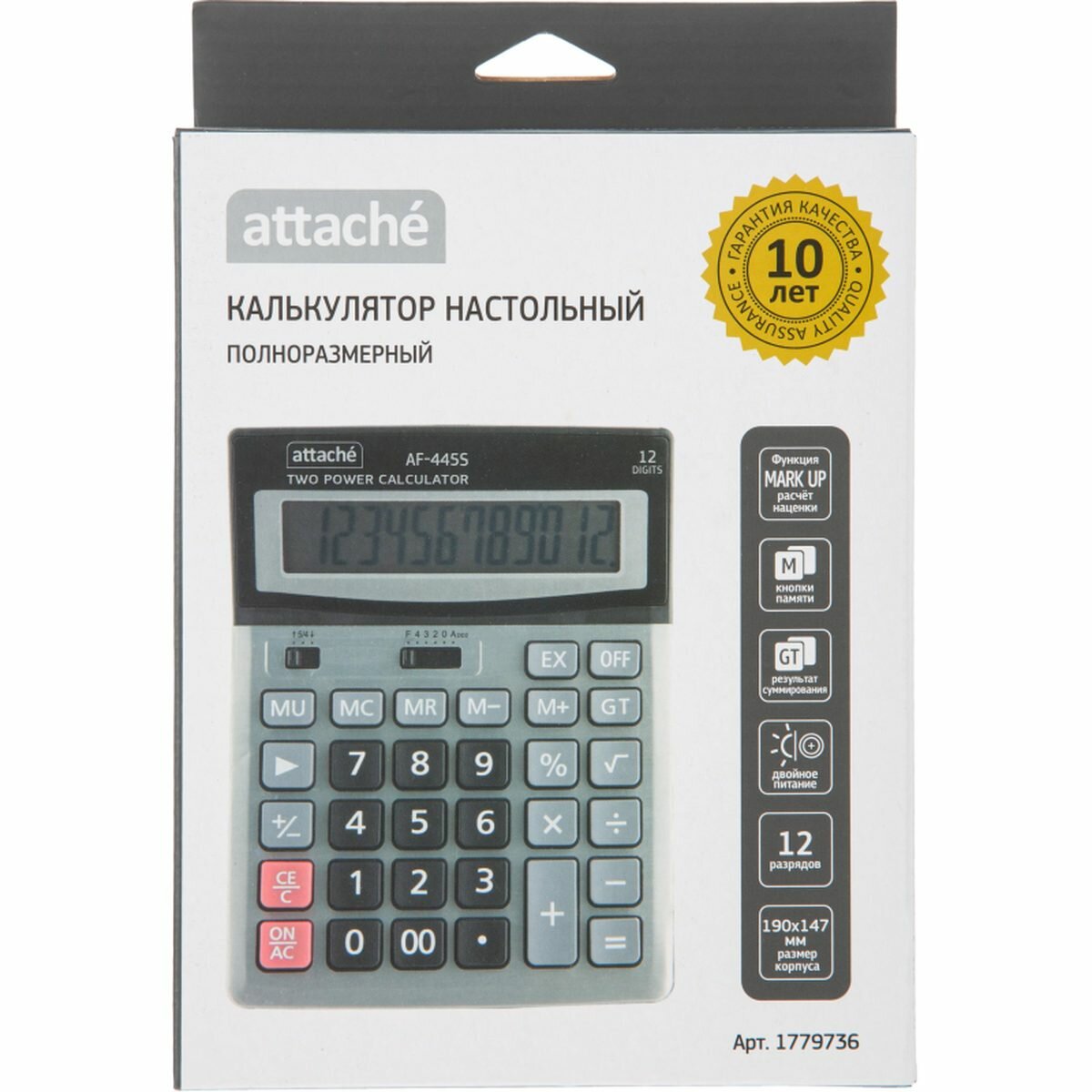 Калькулятор настольный Attache AF-445S, 12-разрядный, серый/черный, 190x147x41мм (1779736), 30шт.: сравнение цен, характеристики, фото, актуальное наличие и цены.