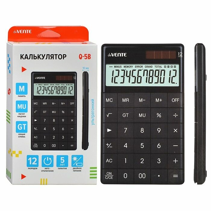 Калькулятор настольный deVENTE Q-5B, 100х166х14 мм, 12 разрядный, ультратонкий черный (4031360): сравнение цен, характеристики, фото, актуальное наличие и цены.