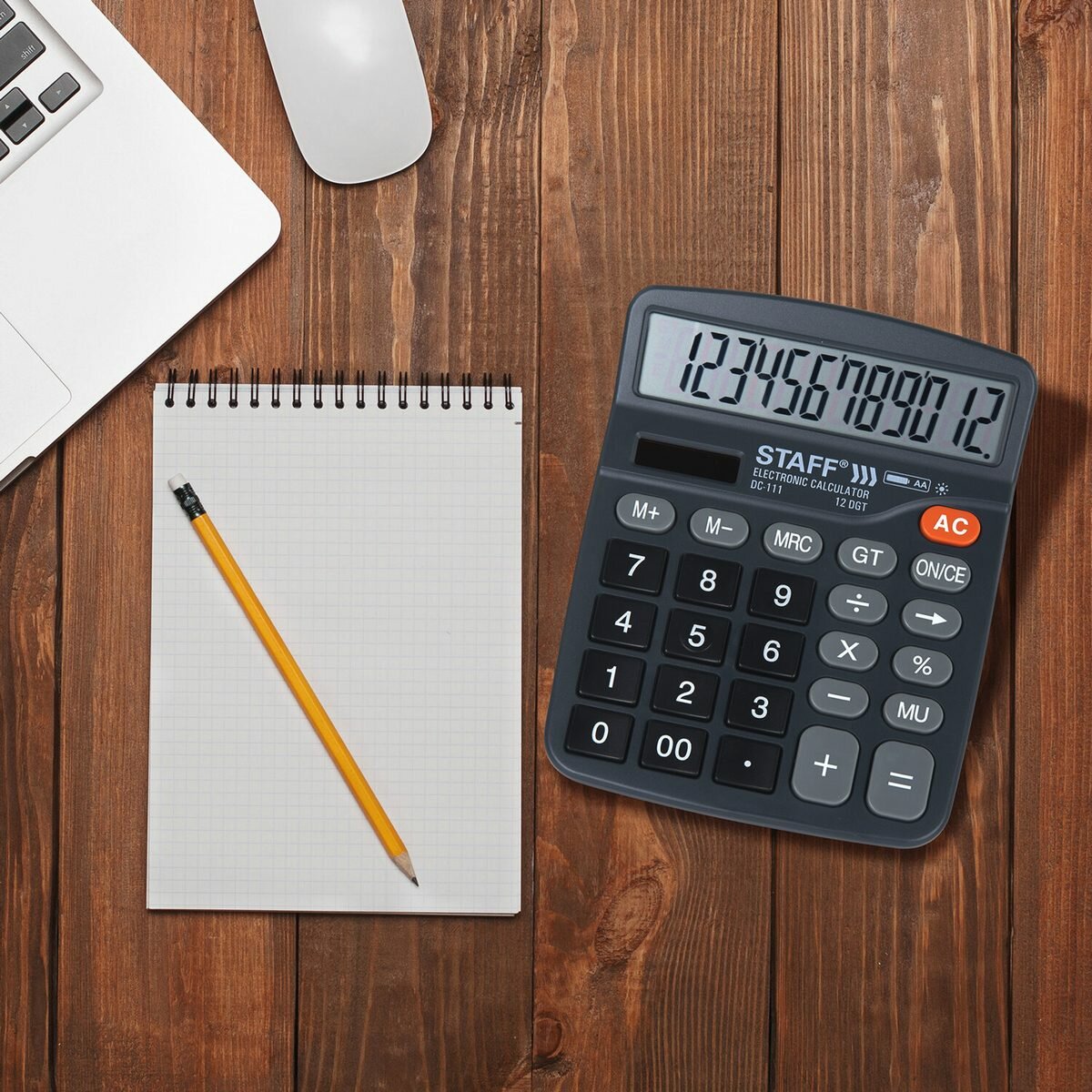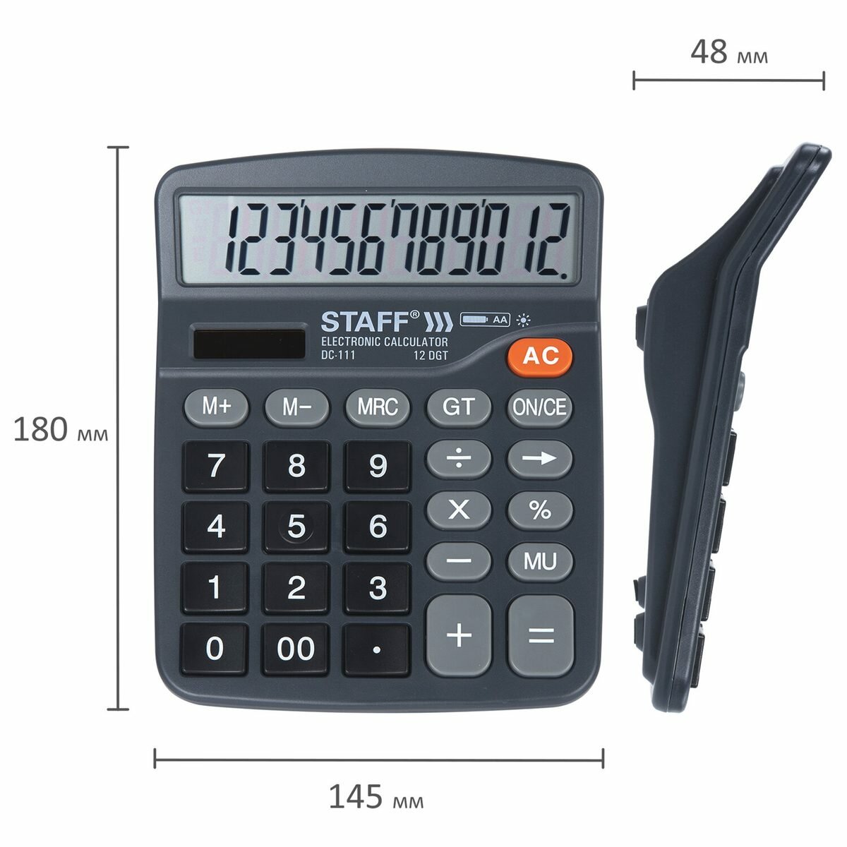 Калькулятор настольный Staff Plus DC-111, 12-разрядный, черный, батарейка АА (250427), 10шт.: сравнение цен, характеристики, фото, актуальное наличие и цены.