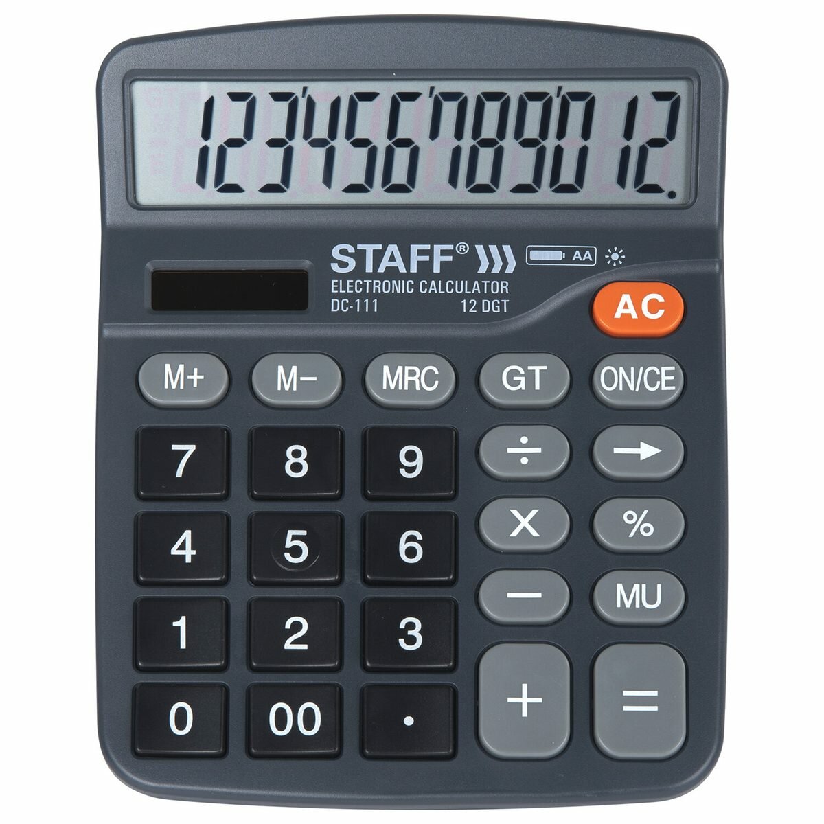 Калькулятор настольный Staff Plus DC-111, 12-разрядный, черный, батарейка АА (250427), 40шт.: сравнение цен, характеристики, фото, актуальное наличие и цены.