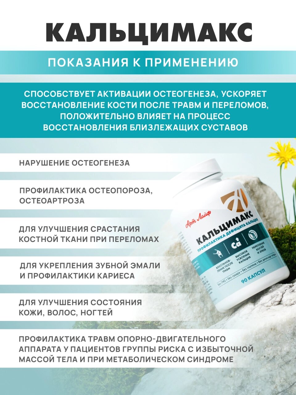 Купить Кальцимакс Арт Лайф. Источник кальция и микроэлементов для костей, ногтей, зубов, кожи и волос. 90 таб. с доставкой по всей России.
