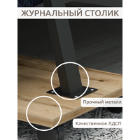 Столик выполнен в современном стиле лофт, что придает ему особую привлекательность и элегантность. Цвет дуб вотан добавляет свежести и универсальности, позволяя сочетать его с различными элементами декора.