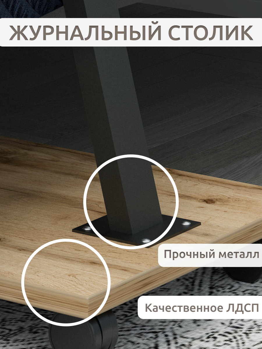 Используйте его как журнальный стол для хранения книг и журналов, или как приставной стол для ноутбука во время работы за пределами рабочего места. Мобильные колесики обеспечивают легкость перемещения этого стола по помещению. Вы сможете без труда переставлять его в нужное место — к дивану для вечернего отдыха или к стене для оптимизации пространства. Такой функциональный элемент мебели идеально подойдет тем, кто ценит комфорт и стиль.