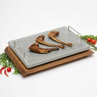 Каменный гриль "ETNA RISTORANTE" 400 Х 300 мм с плоской поверхностью камня. Готовим сидя за столом и для подачи горячего гриль-камня (до 300С) на стол для жарки мяса, стейков, бургеров, морепродуктов, овощей, непосредственно на столе. Подходит как для домашнего использования, так и для посетителей ресторана, стейк-хауса. Альтернативная и интерактивная кухня.