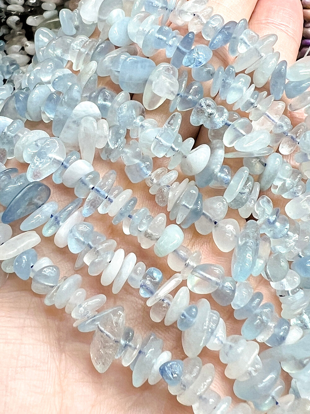 Купить KamenOpt / Аквамарин бусины крошка 5-8 мм, на нитке 80 см, из натурального камня с доставкой по всей России.