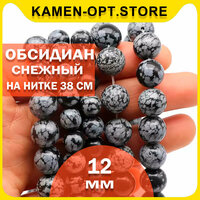 Купить KamenOpt / Обсидиан Снежный бусины 12 мм, на нитке 38 см, из натурального камня с доставкой по всей России.