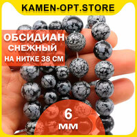 Купить KamenOpt / Обсидиан Снежный, бусины 6 мм, на нитке 38 см, из натурального камня с доставкой по всей России.
