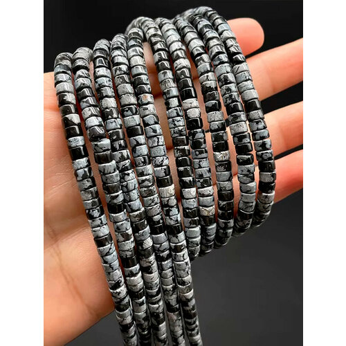 Обсидиан Снежный бусины-рондели - это уникальный материал для рукоделия, который станет отличным дополнением к вашим изысканным проектам. Каждый рондель размером 4х2 мм изготовлен из натурального камня, что придает изделиям особый шарм и неповторимость. На нитке длиной 38 см удобно собирать украшения, используя бусины как разделители или основные элементы дизайна.