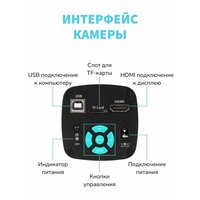 | Подробная комплектация | Камера для микроскопа - 1 шт. мышь для управления - 1 шт. Адаптер питания с кабелем 1,45 м - 1 шт. HDMI кабель 1,2 м - 1 шт. |