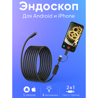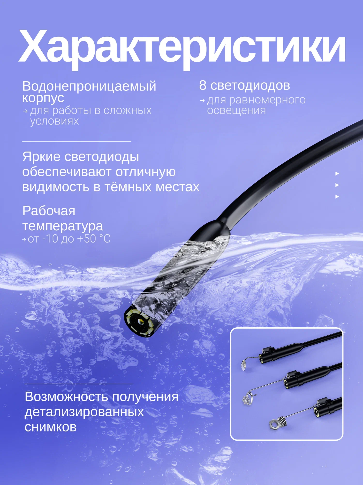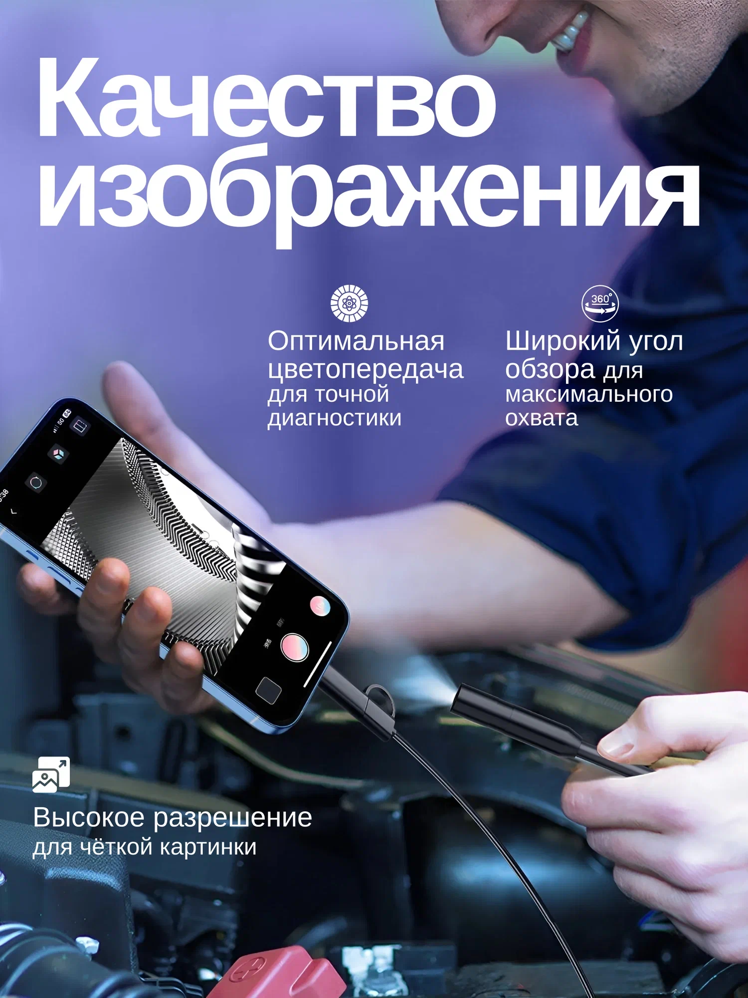 Камера эндоскоп автомобильный для смартфона андроид и айфон, гибкий видеоскоп с подсветкой, Type-C / Lighting, 5 м: сравнение цен, характеристики, фото, актуальное наличие и цены.
