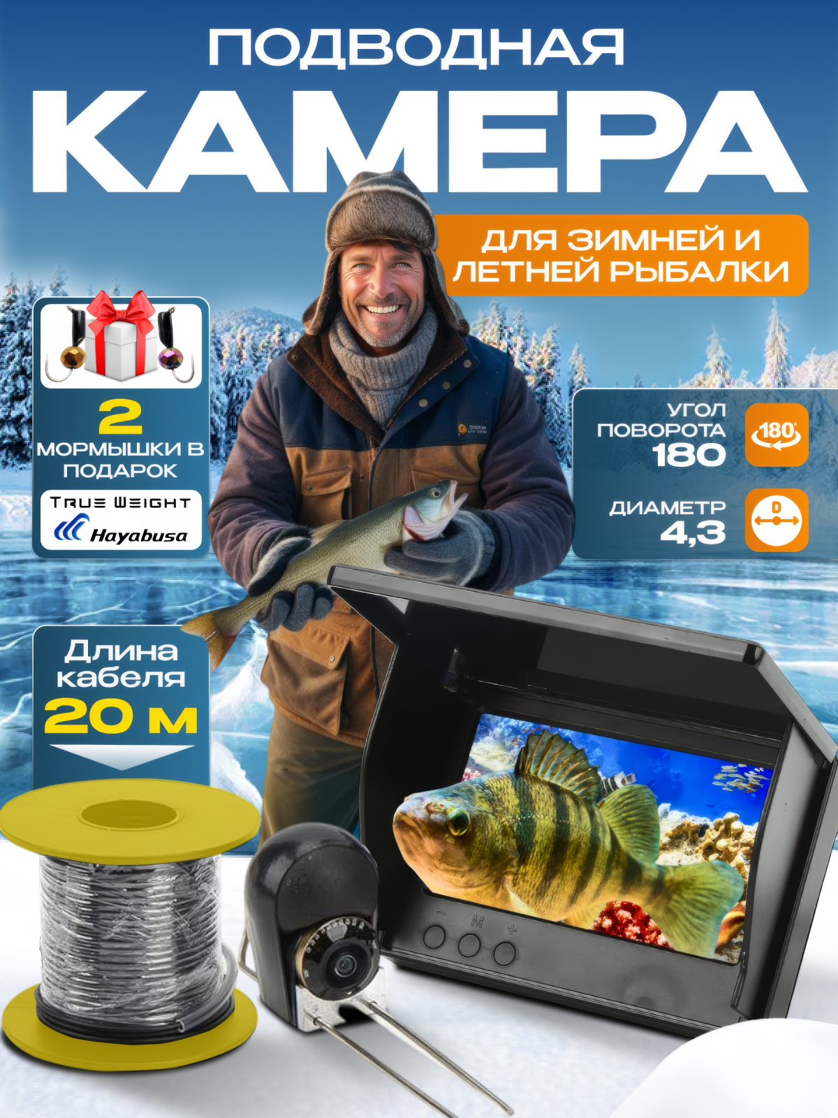 | Дополнительная информация | Погрузитесь в мир увлекательной рыбалки с подводной камерой CAMIX — вашим идеальным помощником в поисках рыбы! Эта камера станет незаменимым инструментом для зимней рыбалки, позволяя проверить наличие рыбы в лунках и запечатлеть уникальные моменты подводной ловли. С диагональю экрана 4.3 дюйма и матрицей IPS с углом обзора 130 градусов вы сможете увидеть, как рыба реагирует на вашу наживку, и рассмотреть водный мир в мельчайших деталях. Корпус из прочного пластика с пылевлагозащитой IP68 и защитой от ударов позволяет использовать камеру в любых условиях, а провод длиной 20 метров обеспечивает достаточную глубину погружения для большинства рыбалок. Длительное время автономной работы до 12 часов достигается благодаря мощному аккумулятору емкостью 5000 мА*ч, так что вы сможете наслаждаться рыбалкой без лишних забот. Камера поддерживает формат AVI, позволяя сохранить самые яркие моменты вашей ловли. Кроме того, в качестве приятного бонуса каждый покупатель получает в подарок пару мормышек российского производителя True Weight с японскими крючками Hayabusa, которые зарекомендовали себя среди рыбаков благодаря своему качеству и эффективности. Подводная камера CAMIX — это отличный подарок для мужчин, пап и всех любителей рыбалки. Подарите себе или своим близким незабываемые впечатления от рыбалки! С подводной камерой CAMIX вы не пропустите ни одной захватывающей секунды. **(Камера без функции записи.)** |