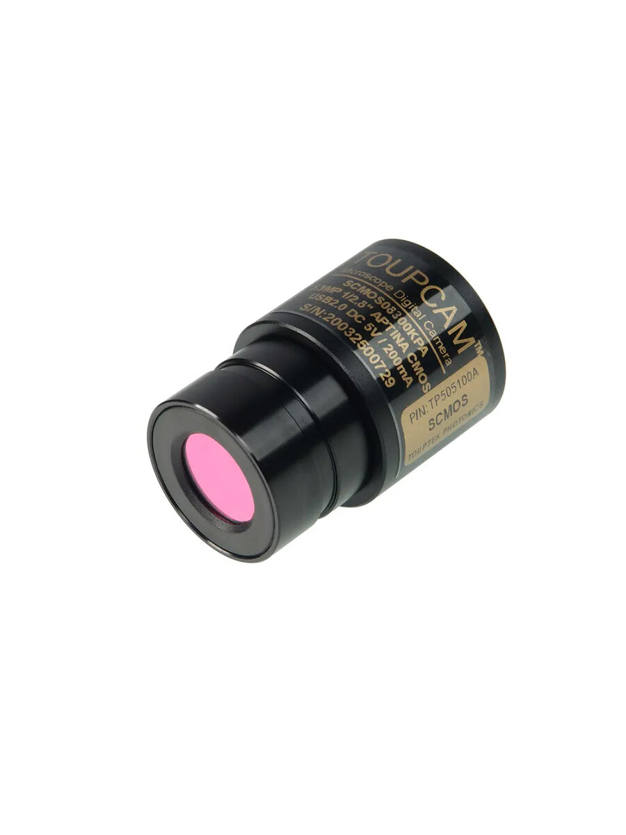 Видеоокуляр ToupCam - цифровая видеокамера c высоким разрешением и качественной цифровой обработкой изображения. Обеспечивает чёткую и яркую картинку c детальной прорисовкой наблюдаемого объекта. Встроенный инфракрасный фильтр ІR-СUТ не пропускает инфракрасные лучи от 700 - 750 нм, обеспечивая естественный цветовой баланс изображения. Цифровая камера для микроскопа быстро и просто устанавливается в тубус тринокулярной насадки или вместо одного штатного оптического окуляра бинокулярного микроскопа, не требует дополнительной настройки - поэтому устанавливать видеоокуляр можно даже во время проведения наблюдений.