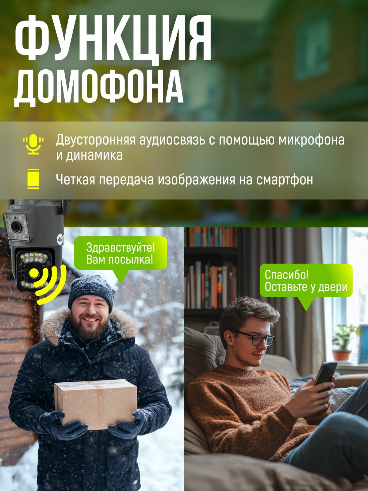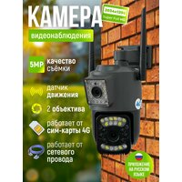 Камера видеонаблюдения 4G с 2 объективами, уличная, 5 Мп, с датчиком движения, сигнализацией и режимом ночной съемки: сравнение цен, характеристики, фото, актуальное наличие и цены.