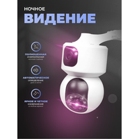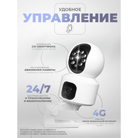Управлять поворотом возможно только верхней частью камеры через приложение со смартфона, планшета или компьютера: по горизонтали на 355°, а по вертикали на 90° градусов. При этом изображение онлайн и архива всегда состоит из двух частей, соединенных воедино. Функции камеры позволят общаться по видеосвязи с детьми, пожилыми людьми или коллегами благодаря встроенным микрофонам и динамику. Наличие двух объективов позволяет камере снимать в большем диапазоне, чем одна камера с одним объективом. Это может быть полезно, если вы хотите следить за большим пространством или если вам нужно видеть больше деталей в одном кадре. Кроме того, камера может стать охранником дома, поскольку оснащена функцией смарт-защита. Благодаря этой возможности вы будете получать push сообщение с изображением события на мобильные устройства и своевременно реагировать на них. Если присутствует опасность утраты видеозаписей - можно приобрести в сервисах приложения хранение в облаке.