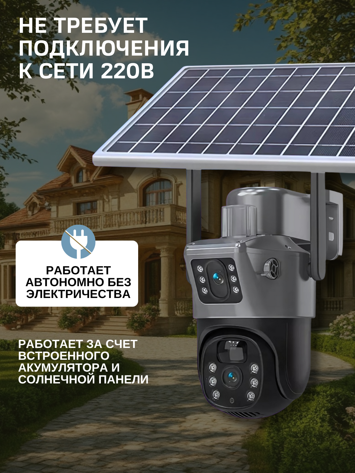 Купить Камера видеонаблюдения, 4G, с сим-картой, солнечная батарея, двухкупольная, 10МП с доставкой по всей России. Камера видеонаблюдения, 4G, с сим-картой, солнечная батарея, двухкупольная, 10МП: сравнение цен, характеристики, фото, актуальное наличие и цены.