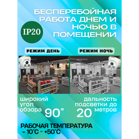 Аналоговая видеокамера имеет фиксированный объектив 3,6 мм, угол обзора 90 градуса охватывает большую площадь, а возможность крепления на столе, стене, потолке позволяет установить камеру в оптимальном месте. Это позволяет существенно снизить количество камер, необходимых для следящей системы наблюдения и сократить стоимость. Видеокамера имеет ночное видение с подсветкой до 20 метров, что помогает заботиться о безопасности детей, взрослых, пожилых людей или животных в доме, да и вообще внутри любых помещений.