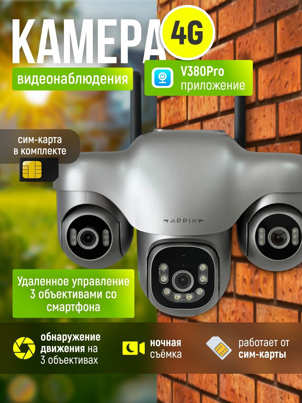 Купить Камера видеонаблюдения для дома 4G APPIX, уличная с сим картой с доставкой по всей России. Камера видеонаблюдения для дома 4G APPIX, уличная с сим картой: сравнение цен, характеристики, фото, актуальное наличие и цены.