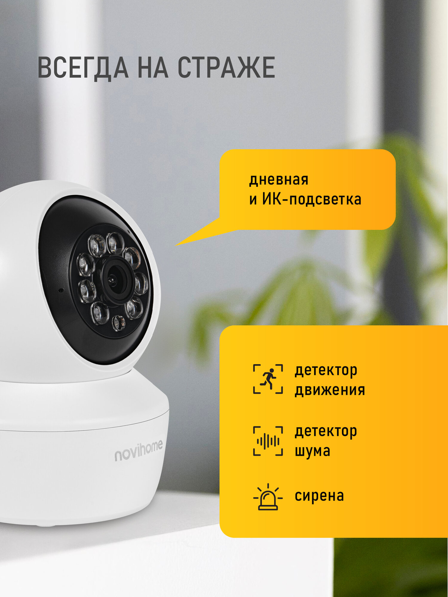 Novihome ATRIA это компактная поворотная IP видеокамера в линейке Novihome c разрешением 3 Мп.