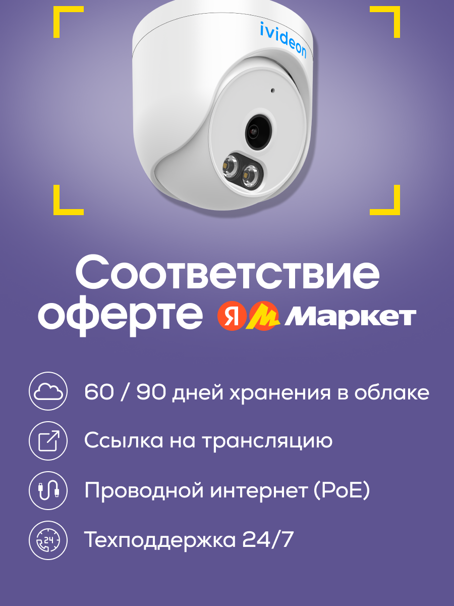 Ivideon-6221F-ML — купольная IP-камера для ПВЗ с PoE питанием — Снимает в разрешении Full HD (1920×1080) при 30 кадрах в секунду — Оснащена объективом 2.8 мм и матрицей 1/3" Progressive Scan CMOS, угол обзора — 86° — ИК-подсветка до 25 метров обеспечивает надёжную съёмку в тёмное время суток — Технологии улучшения изображения: 3D DNR, DWDR, AGC, MGC, AWB, ROI — Поддерживает кодеки сжатия видео H.264 и H.265 — Встроенный микрофон для аудиоконтроля — Питание через PoE, установка — без лишних проводов и адаптеров — Совместима с облачным сервисом Ivideon: архив до 90 дней, удалённый доступ, трансляция, экспорт MP4 — Идеально подходит для ПВЗ — стабильная работа и соответствие требованиям Размер: 75,3×78×78 мм, вес: 129,8 г, корпус из пластика. Рабочая температура: от -10 до +50°C. Гарантия 24 месяца. Услуга облачного сервиса оказывается АО "Мобильные Видеорешения".