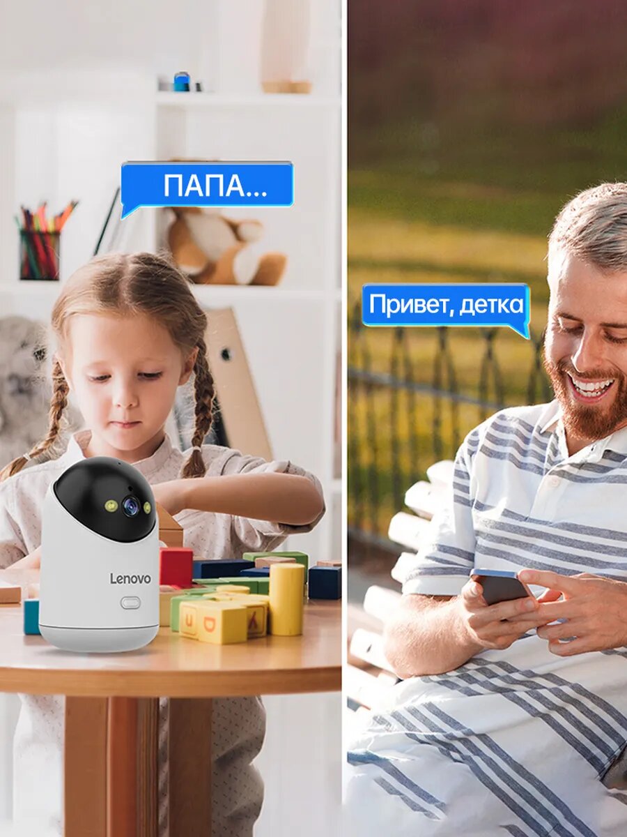 Камера видеонаблюдения Lenovo и видеоняня — идеальный выбор для семей, которые заботятся о детях, пожилых родственниках или домашних животных. Вы можете получать доступ к видеопотокам, просматривать их и управлять ими со своего мобильного устройства в любое время и в любом месте. Где бы вы ни находились, общайтесь с близкими через встроенный микрофон и динамик, слушая, что происходит дома, в режиме реального времени и мгновенно реагируя. Камера оснащена датчиками обнаружения движения и сразу же отправляет уведомления на ваш смартфон, когда обнаруживает движение. Обладая широким полем зрения, ее поворотный объектив с углом поворота 355 градусов свободно вращается в любом направлении, обеспечивая всестороннее наблюдение даже в компактных помещениях. Оснащенная функцией ночного видения, она обеспечивает четкое изображение с разрешением 4K даже в условиях низкой освещенности. После наступления темноты она автоматически переключается в инфракрасный режим, что позволяет четко наблюдать в полной темноте. Настройка через приложение занимает всего три минуты. Камера стабильно работает в диапазонах частот 2,4-5 ГГц. Управляйте устройством мониторинга и получайте уведомления через приложение Cam720 на вашем смартфоне. Устройство поддерживает хранение на карте microSD или в облачном хранилище. Обратите внимание, что новые пользователи получают только 30 дней бесплатного хранения в облачном хранилище. В наш комплект входит: Камера ×1 Руководство ×1 Набор крепежных винтов ×1 Блок питания 5 В 1,5 А ×1 Кабель питания Type-C 2.7 м ×1 Универсальное крепление ×1 (Карта памяти не входит в комплект)