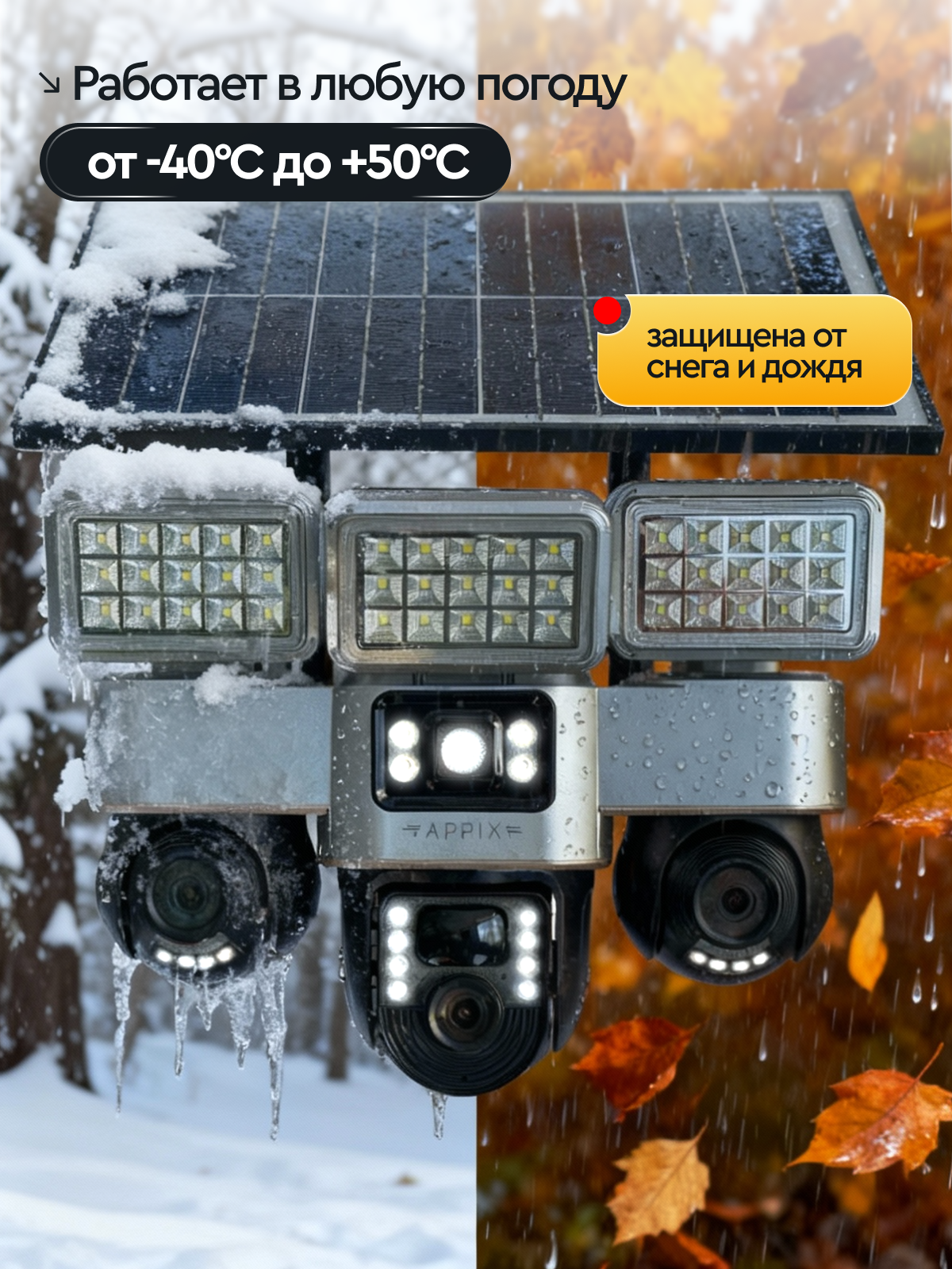 | Комплектация | Уличная поворотная IP PTZ камера 4G - 1 шт. Солнечная панель - 1 шт. Комплект шурупов - 2 шт. Кронштейн - 1 шт. Упаковка - 1 шт. Инструкция на русском языке с картинками - 1 шт. |
