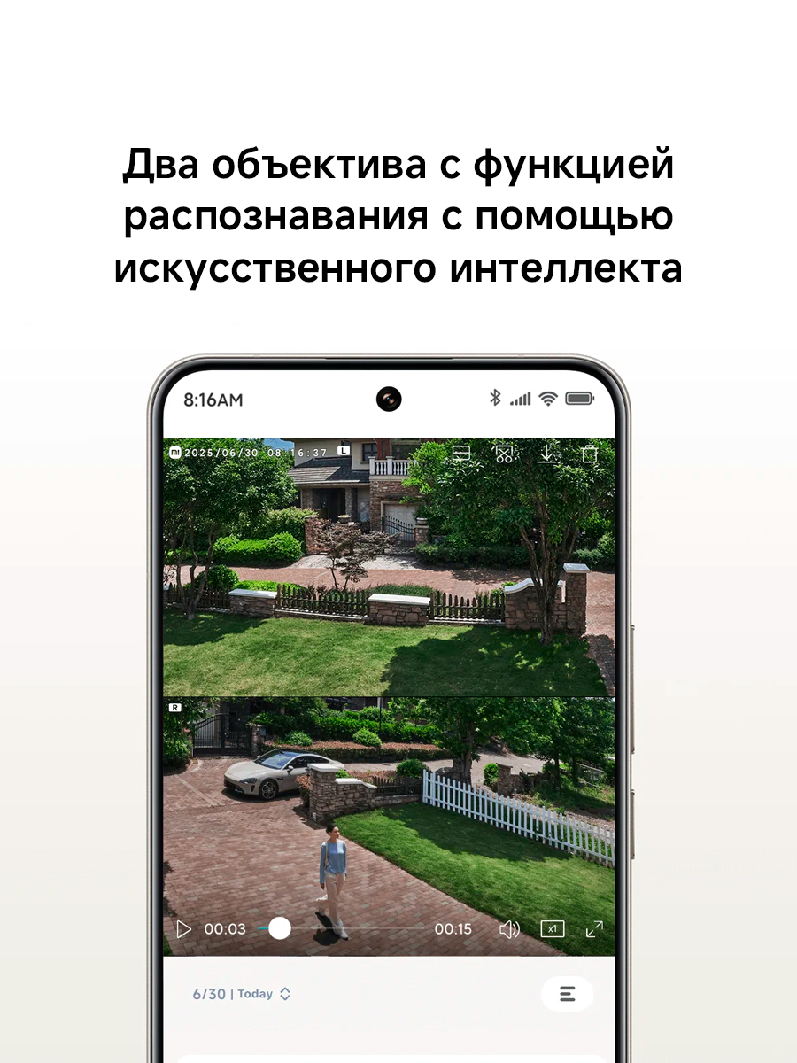 Xiaomi Outdoor Camera CW100 Dual — это надежная уличная IP-камера с двумя объективами, объединяющая широкоформатное наблюдение и AI-распознавание для максимальной безопасности вашего дома. С разрешением 3 МП (2304×1296) и поддержкой кодека H.265 вы получите четкое изображение даже в условиях слабой освещённости, при этом экономя память. Двусторонняя аудиосвязь, светодиодная и инфракрасная подсветка обеспечивают активное реагирование, а функционал обнаружения людей и транспорта предотвращает проникновения. Устойчивая к атмосферным воздействиям конструкция IP66, диапазон −30…+60 °C и гибкие варианты хранения (microSD, NAS, облако) делают CW100 Dual идеальной камерой для круглогодичного наблюдения.