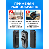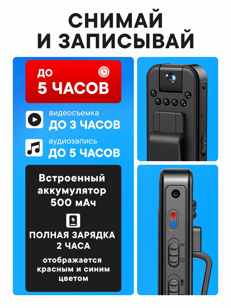 Такая камера наблюдения для дома легко помещается в карман, что делает ее идеальной для съемок. Она имеет портативный размер, что делает ее удобной в авто или на улице, в том числе как экшен камера. Ее компактный размер и легкий вес (размер корпуса 80*25*20 мм вес 23 гр) удобен для ношения в нагрудном кармане пиджака, куртки или рубашки. Удобная клипса на корпусе этого устройства для записи информации позволяет без проблем закрепить на одежде, сумке, не привлекая никакого внимания, поэтому вы можете записывать важные мероприятия или решать рабочие задачи без какого-либо дискомфорта для себя и окружающих. Наша мини видео камера имеет встроенный микрофон высокого качества позволяет записывать звук, обеспечивая четкое и качественное воспроизведение аудиозаписей, сохраняя файлами по 30 минут. Приятным бонусом является возможность расширить память устройства с помощью карты памяти от 16 до 128 ГБ. На такой карте поместится несколько часовое видео в качестве 1080p, а видеозапись при этом сохраняется роликами по 10 минут. Поэтому именно наша маленькая видеокамера идеально подойдёт для тех, кто часто записывает длительные мероприятия или нуждается в большем объеме памяти. И будет отличным подарком для родных и близких, особенно для начинающего блогера, видео графа.