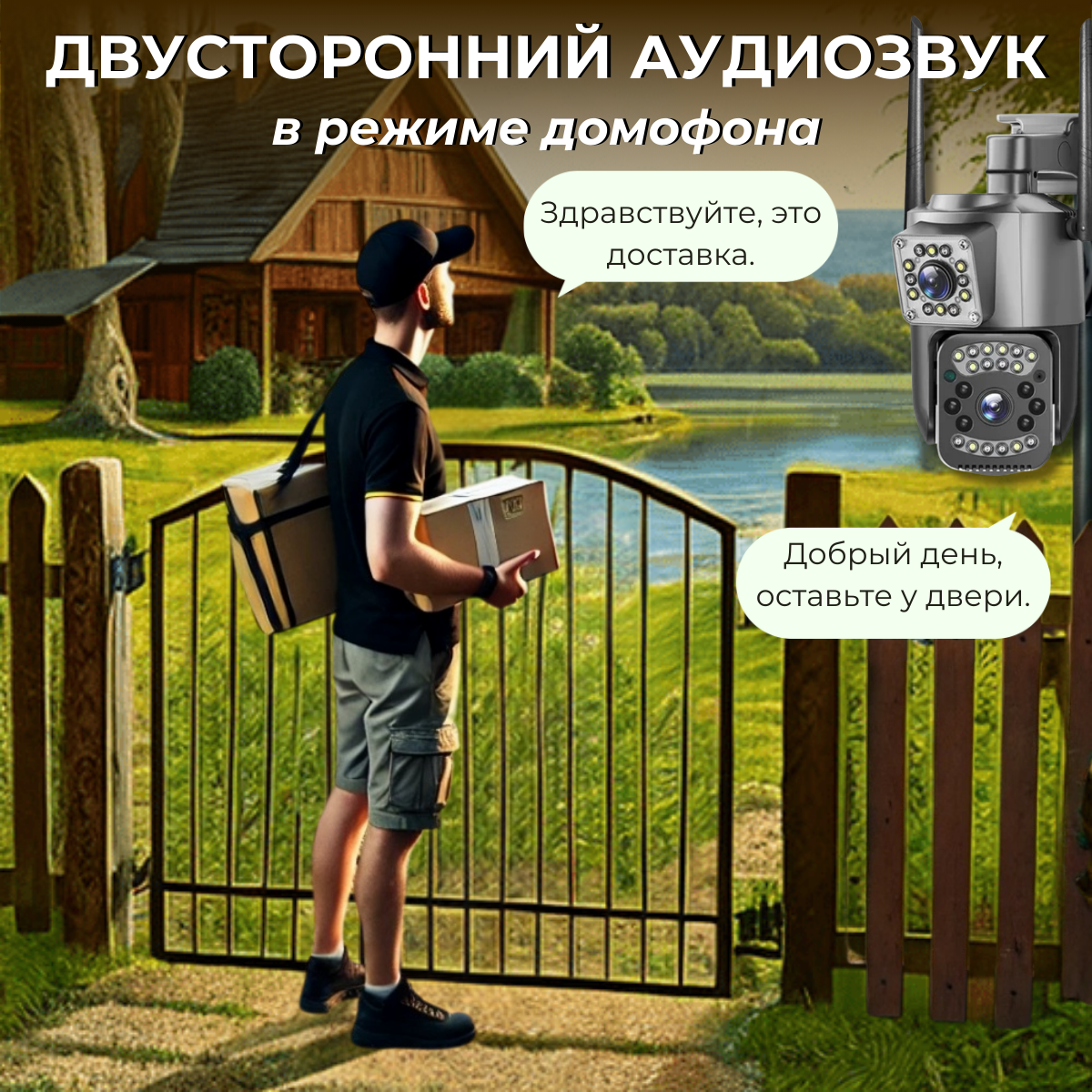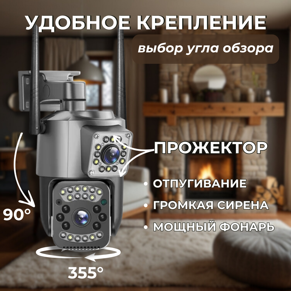 Уличная умная водонепроницаемая камера видеонаблюдения 4G с разрешением 10Мп и двумя объективами обеспечивает качественное FullHD видео (1920x1080) на двойном экране. Благодаря облачным технологиям, вы сможете легко управлять камерой и просматривать записи из любой точки мира через смартфон или компьютер. Камера оснащена функцией оповещения, которая издает звуковой сигнал и мигает красно-синими огнями для отпугивания воров.