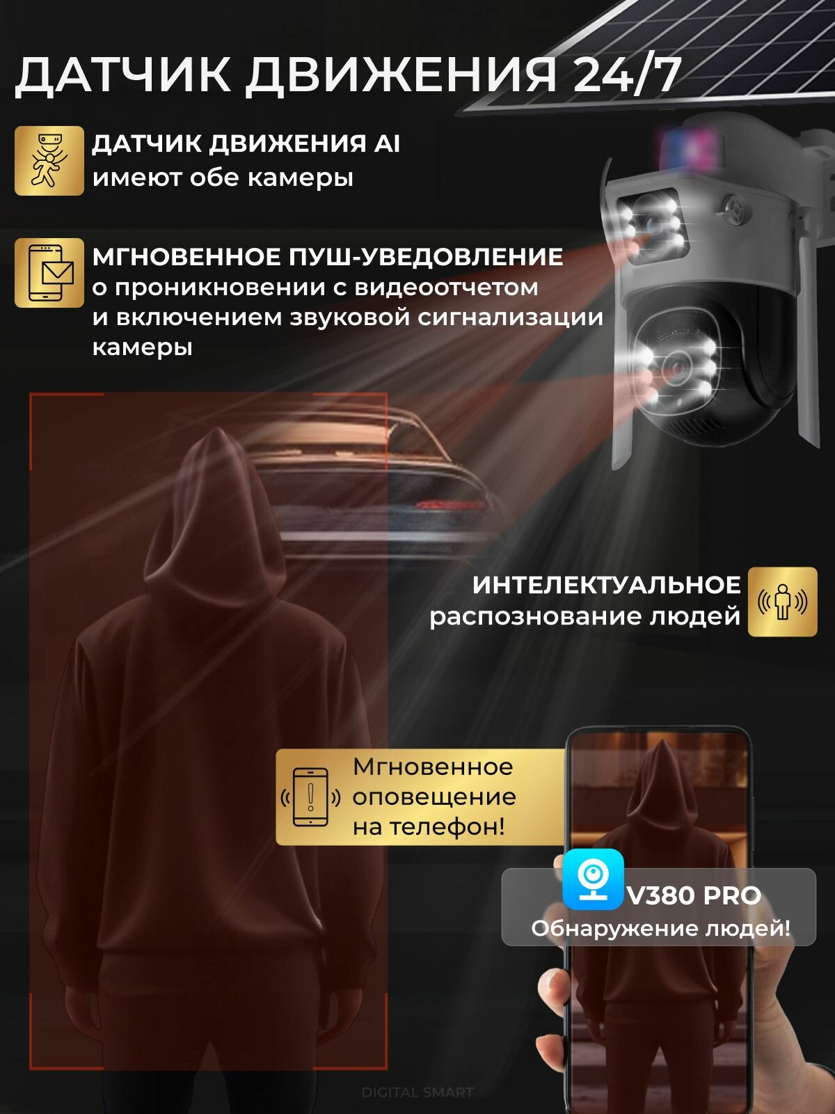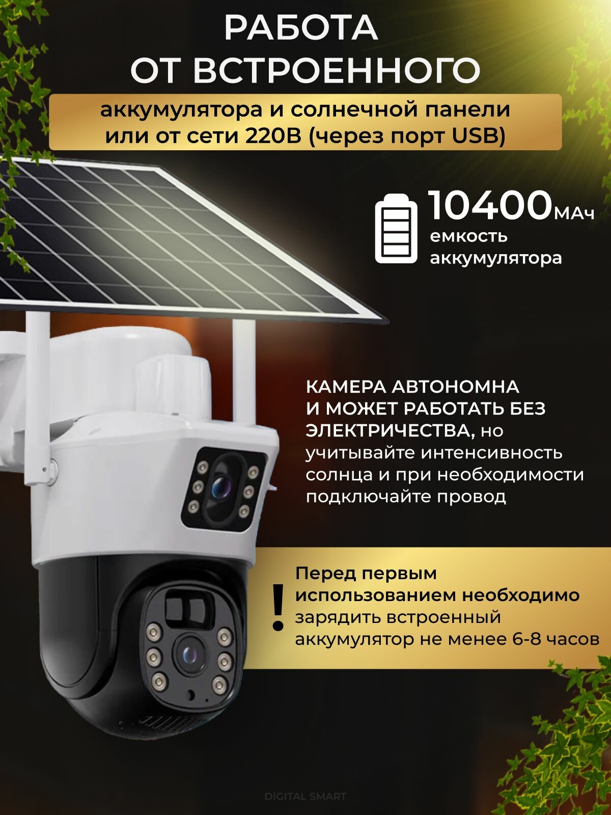 | Дополнительная информация | Уличная камера с солнечной панелью и встроенным powerbank 6000 mAh |