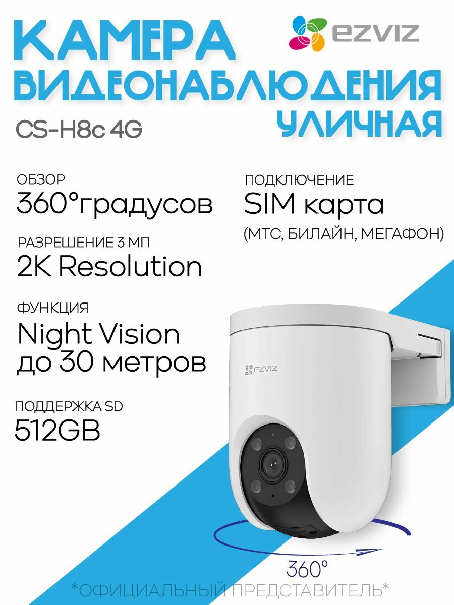 Камера видеонаблюдения уличная поворотная Ezviz CS-H8c 4G 3МП