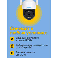 Ivideon Outdoor PTZ Поворотная 2Мп WiFi видеокамера с фиксированным объективом 2.8мм, с ИК-подсветкой до 30м; LED-подсветкой до 5м; 1/2.9" Progressive Scan CMOS; Угол обзора 94°; 0.01лк@F1.8; Видеосжатие: H.265+/H.264+/H.265/H.264/MJPEG; Разрешение основного потока 2590 * 1920@25к/сек; Разрешение дополнительного потока 704 * 576@25к/сек; Видеобитрейт: 256 - 8000Кбит/с; 3D DNR, BLC, HLC, DWDR, ROI; Детекция движения, Детектор людей, Автотрекинг по движению, Обнаружение вторжения, Пересечение линии; Аудиокодеки: G.711A/G.711U/AAC/PCM/G.726; WiFi IEEE802.11b/g/n 2,4ГГц; LANx1 ; SD-карта до 256 ГБ; Питание DC 12В 6.2Вт Встроенный микрофон; -30 ~ +60; Степень пыле и влагозащиты IP66; Размер камеры (ШхВхД) 119.5x198x102мм; Материал камеры: Пластик; Вес (г.) 565; Гарантия 24мес; Блок питания в комплекте