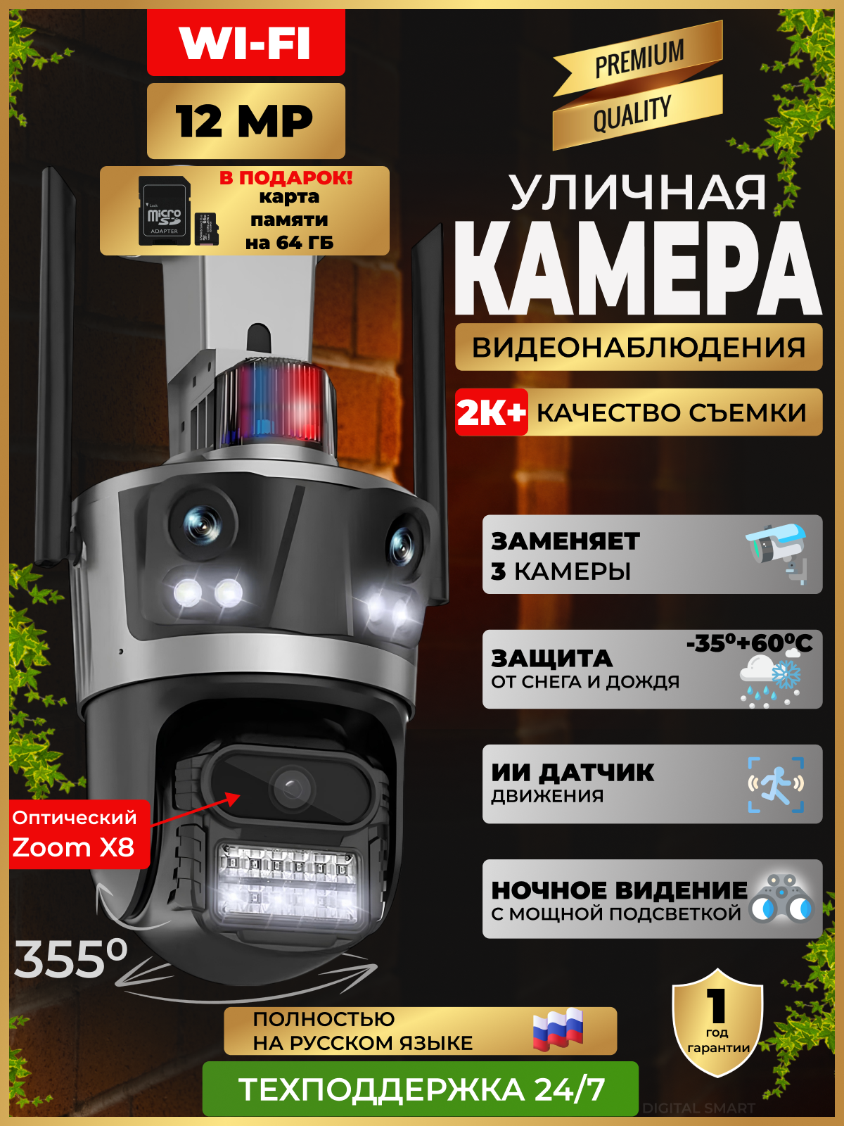 | Дополнительная информация | Уличная камера с солнечной панелью и встроенным powerbank 6000 mAh |