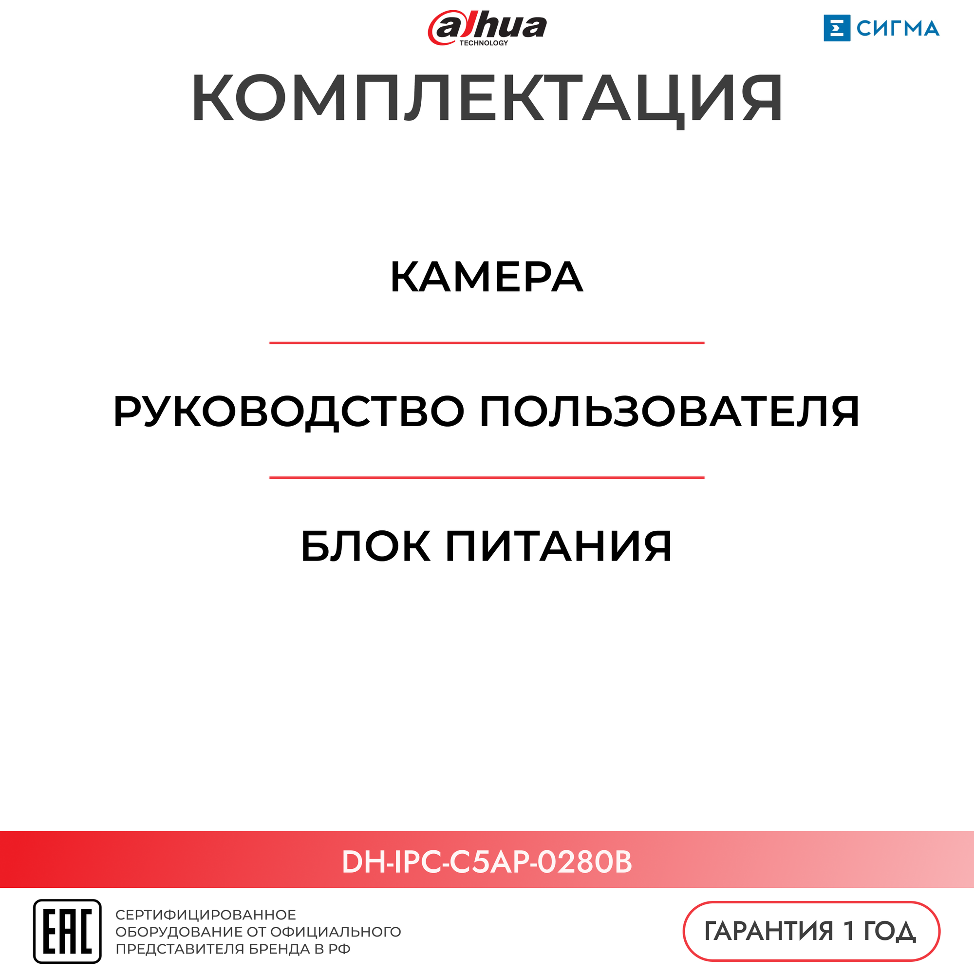 DAHUA DH-IPC-C5AP-0280B Компактная IP-видеокамера с Wi-Fi 2.4ГГц 5Мп, 1/3.2” CMOS, объектив 2.8мм, обнаружение людей, ИК: сравнение цен, характеристики, фото, актуальное наличие и цены.